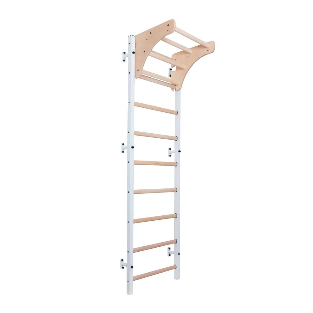 BenchK 211W + A204 White Wall bars for kids room with adjustable beech wood pull-up bar and gymnastic accessories