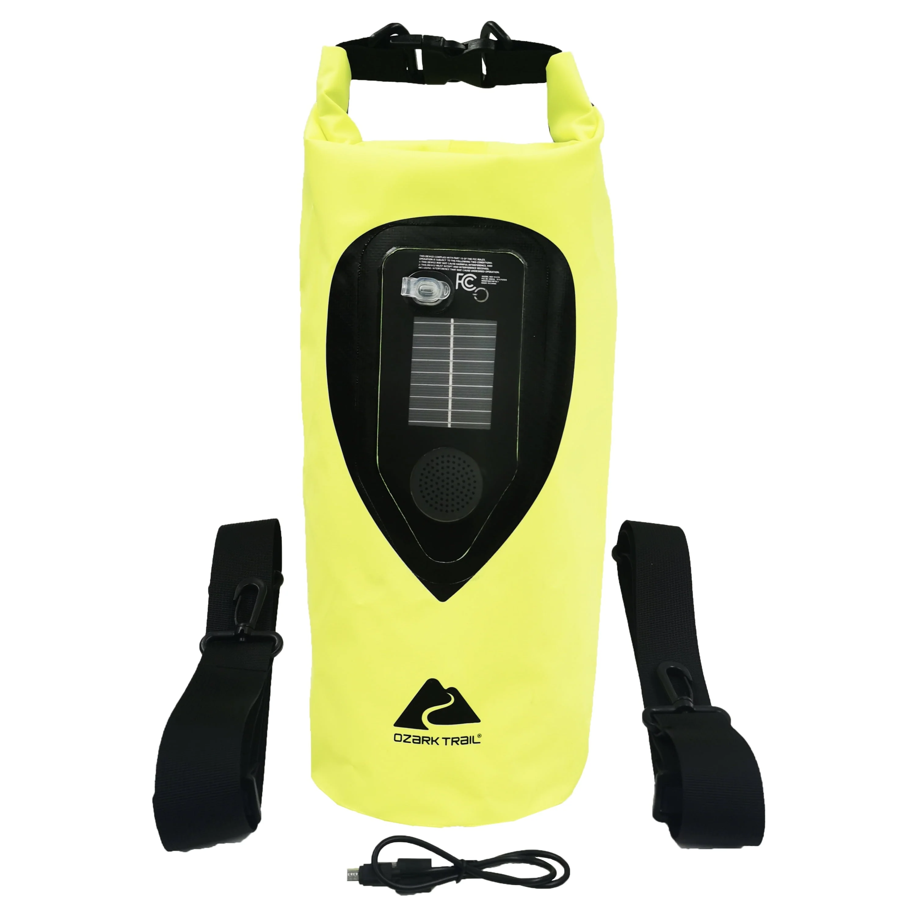Ozark Trail 10 L Waterproof Portable Speaker Dry Bag with LED Lights, Waterproof Solar and USB Powered, Yellow