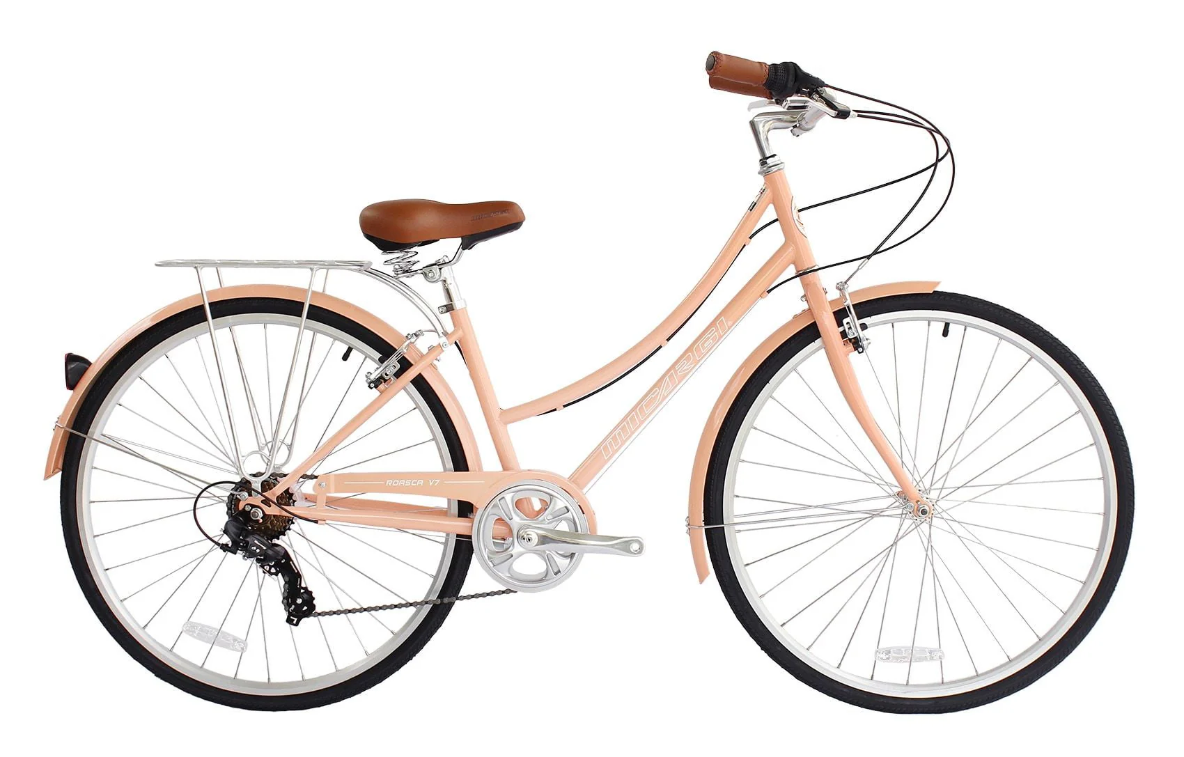 Wonder Wheels City Bike 700C 39 Cm/15.5" Hi-Ten Steel Frame, Shimano Tz21-7 Speed V-Brake, Alloy Rims 700C*14G*32H, Tire:700Cx35 Black. With Back Rack - Peach