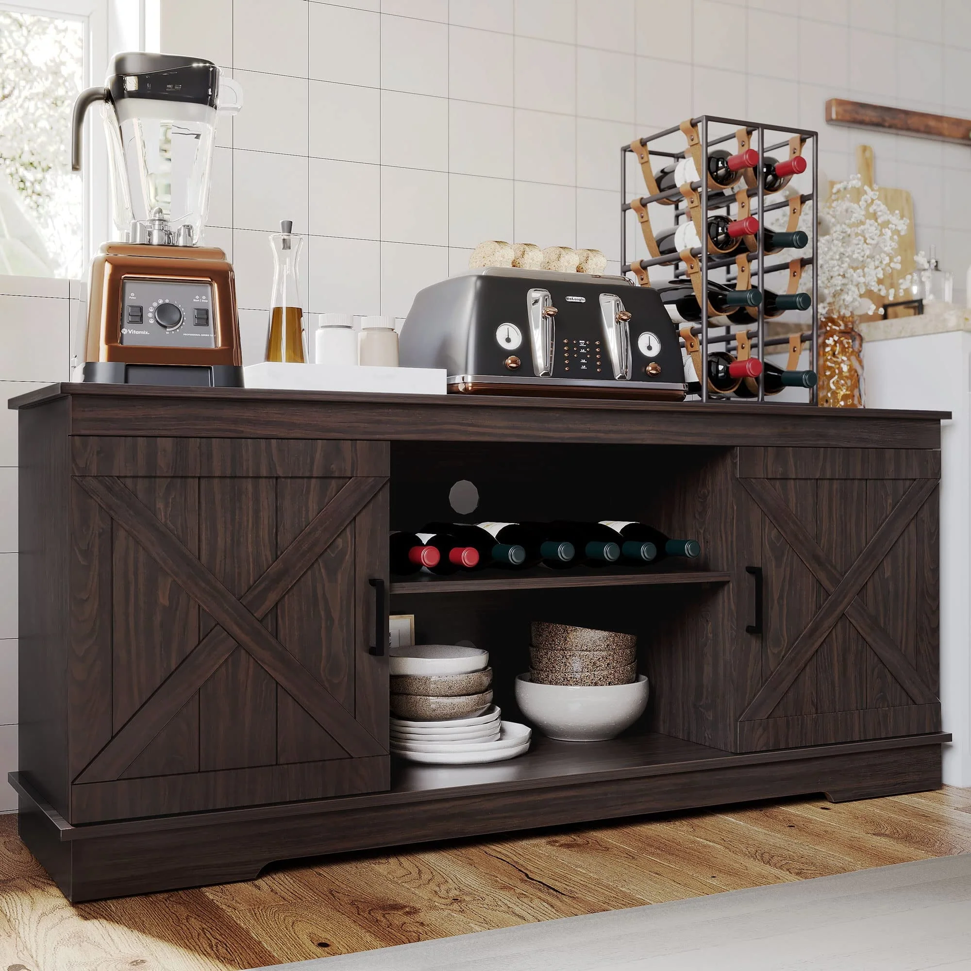 DEXTRUS Farmhouse Storage Cabinet, Buffet Sideboard with Barn Door for Dinning Living Room, Espresso