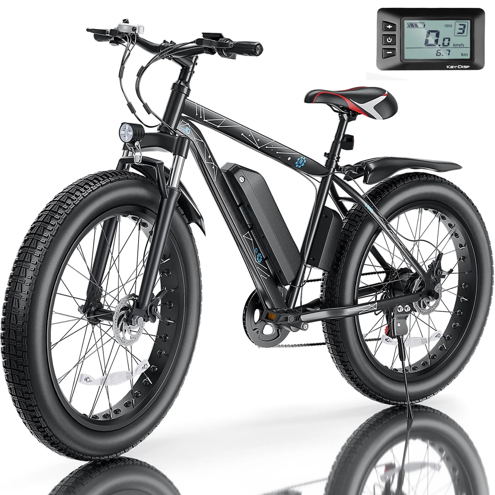Elifine 26"x4.0 Fat Tire Electric Bike, 48V 13Ah Battery, 500W Electric Mountain Bicycle, Cruise Control Mode, Adult E Bikes for Men with LCD Display, 7-Speed Snow Bike Beach E-Bike for Adults