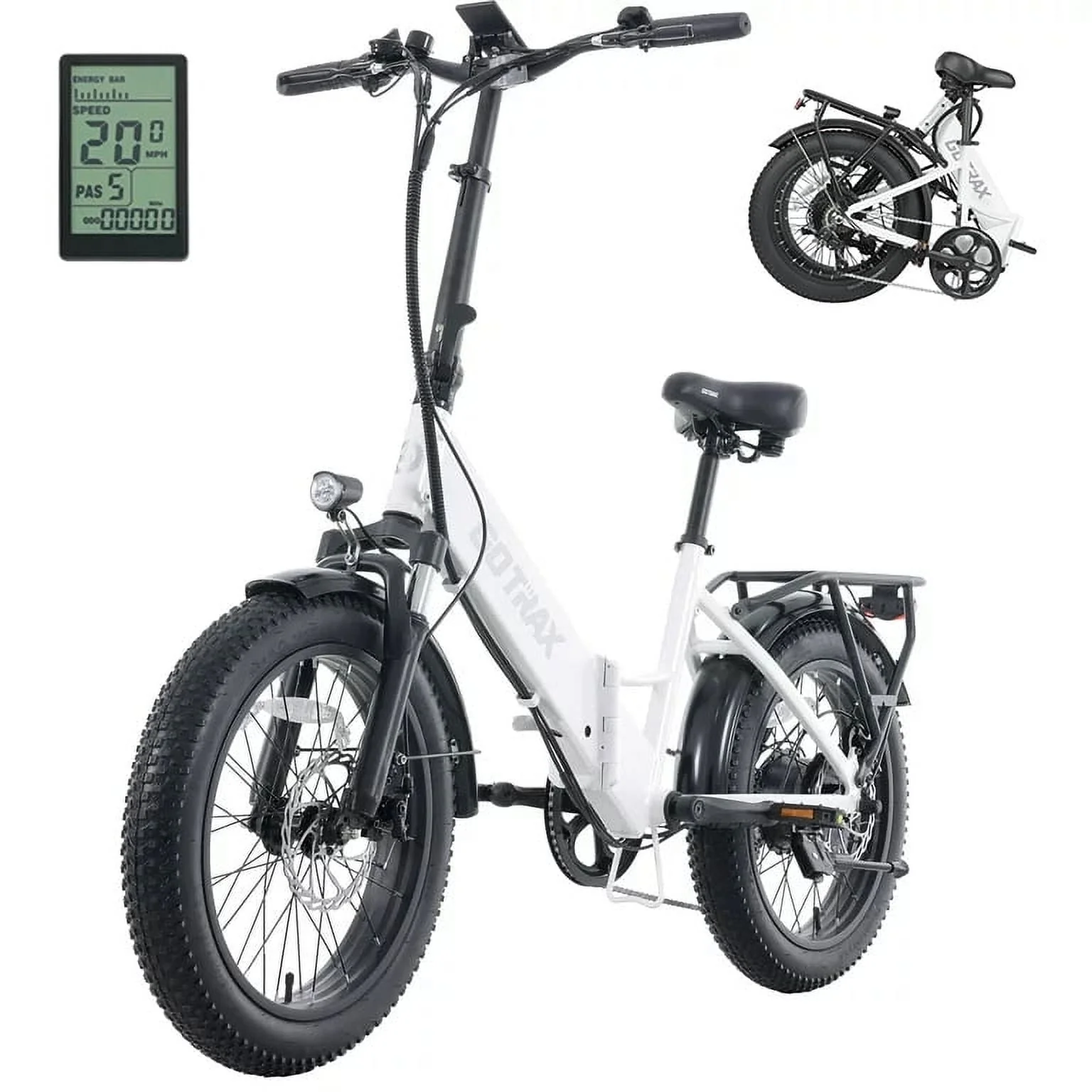 F2 Electric Bike for Adults, 500W/48V/20mph/20" x 3" Fat Tire Folding E-Bike with LCD Display and Adjustable Seat for Commute, Travel, White