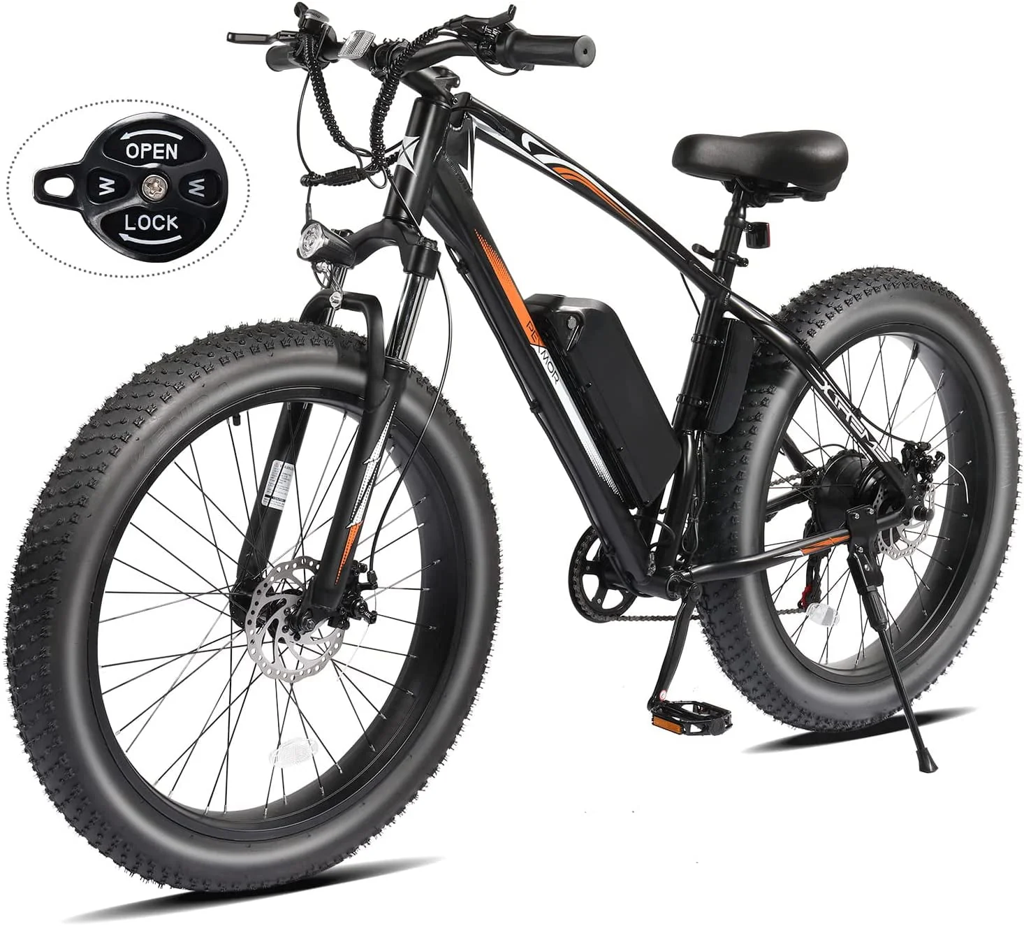 PEXMOR Electric Bike for Adult, 26" Fat Tire Adult Ebike Electric Bicycle 500W 48V 13AH Removable Battery, 20MPH Electric Mountain Bike Snow Beach E-Bike Suspension Fork Shimano 7 Speed,UL Certified