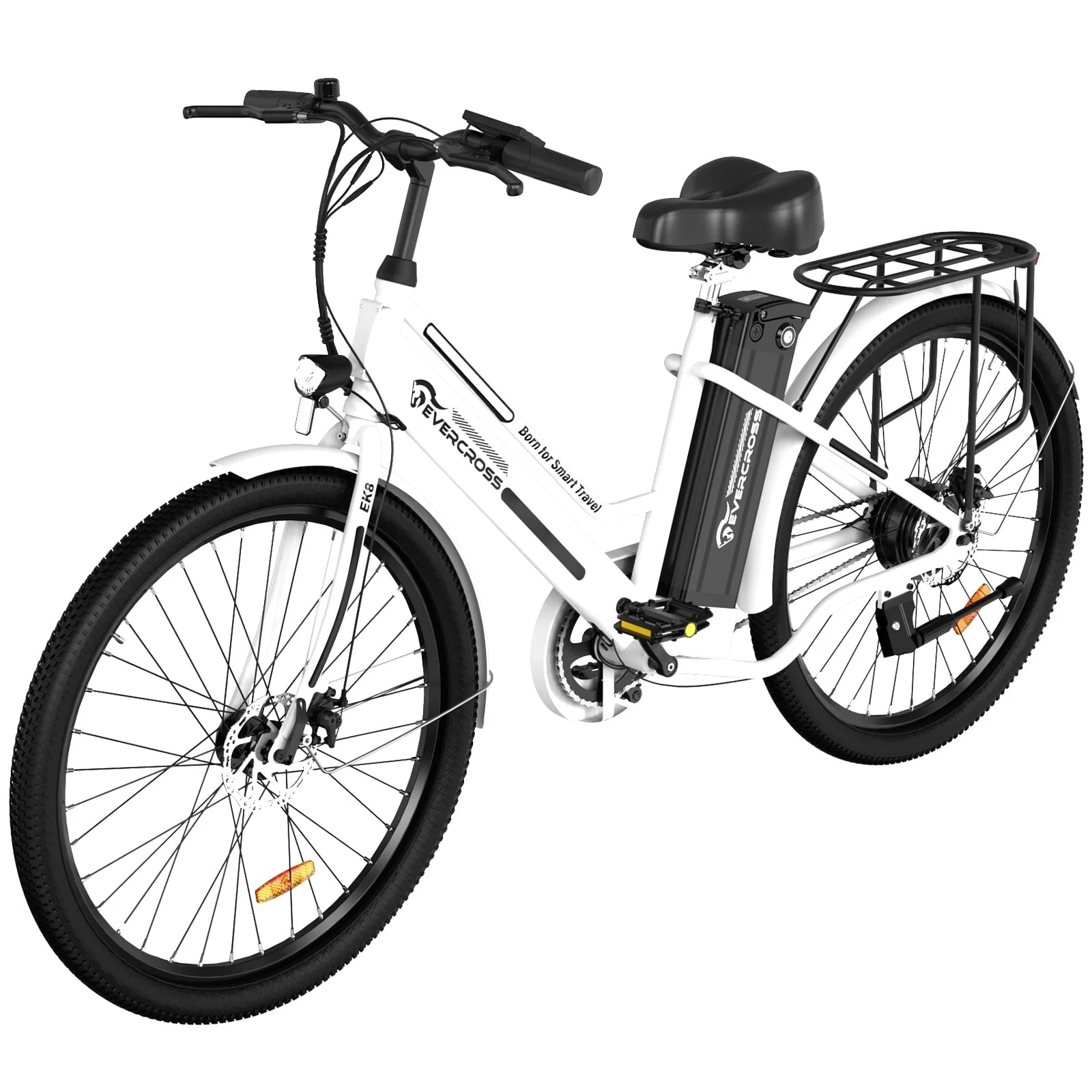 EVERCROSS Electric Bike, 26" EBike, 500W Electric Bike for Adults, 36V Removable Battery, Max.Speed 19.9MPH Electric Bicycle with LED Display, White