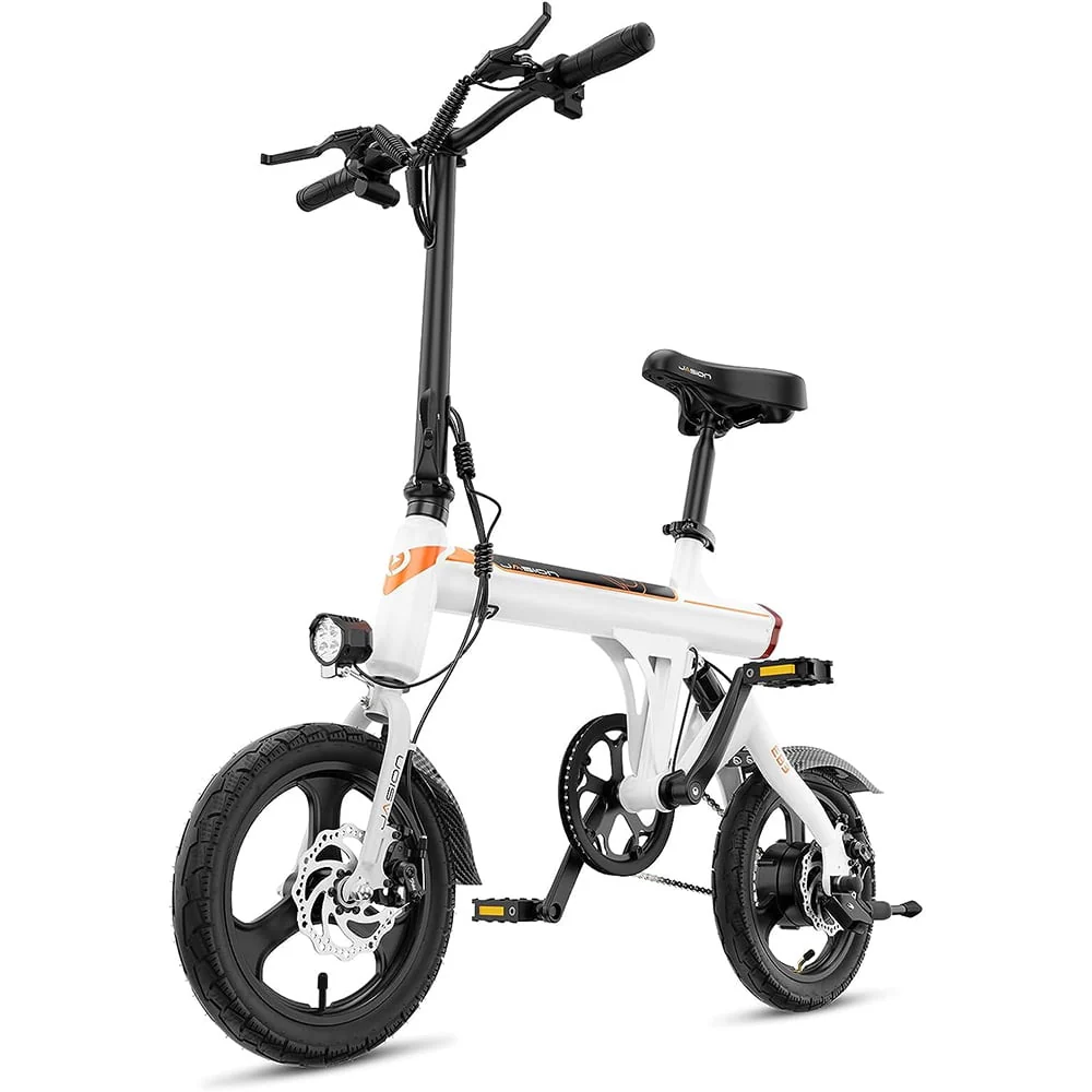 Jasion EB3 Folding Electric Bike for Adults, 350W Brushless Motor Electric Bicycles with 36V 7.5Ah Battery, Center Suspension, 3 Levels Assist, 14" Foldable ebike for Teens