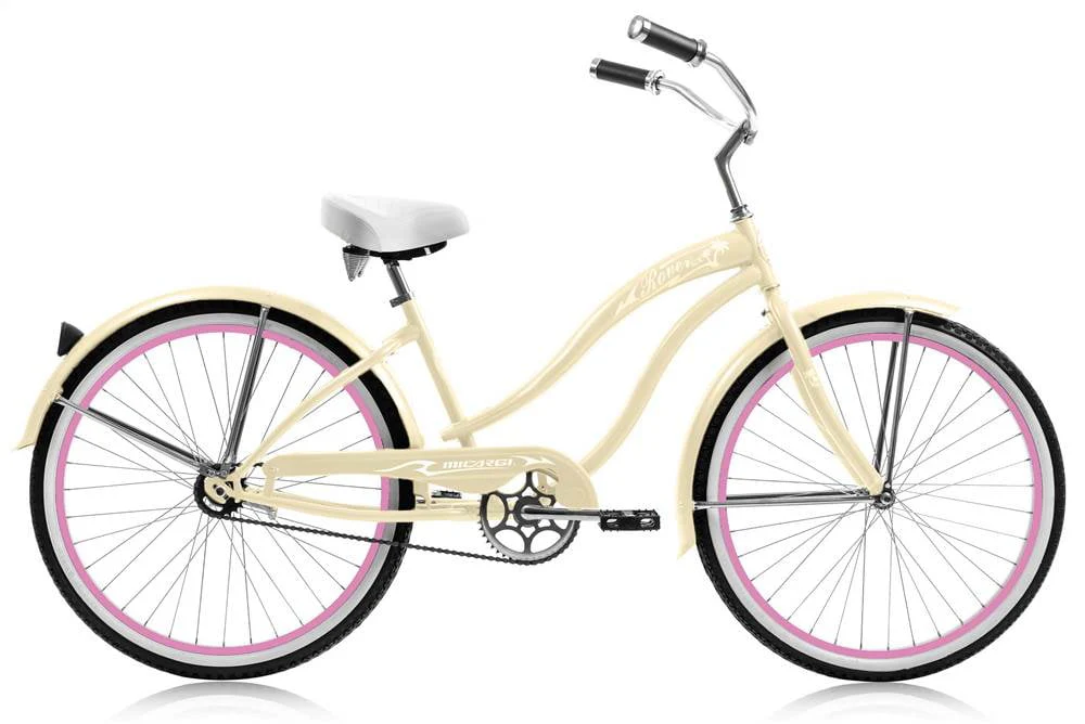 Micargi ROVER GX 26" Beach Cruiser Coaster Brake Single Speed Stainless Steel Spokes One Piece Crank Alloy Pink Rims 36H With Fenders Color: Vanilla/ Pink Rim