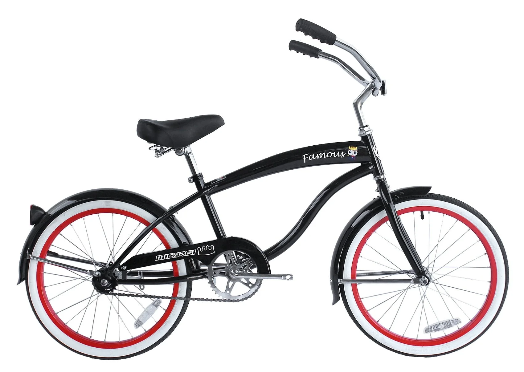 Micargi 20 In. Famous Kid's Size Bike Cruiser, Black, White and Red