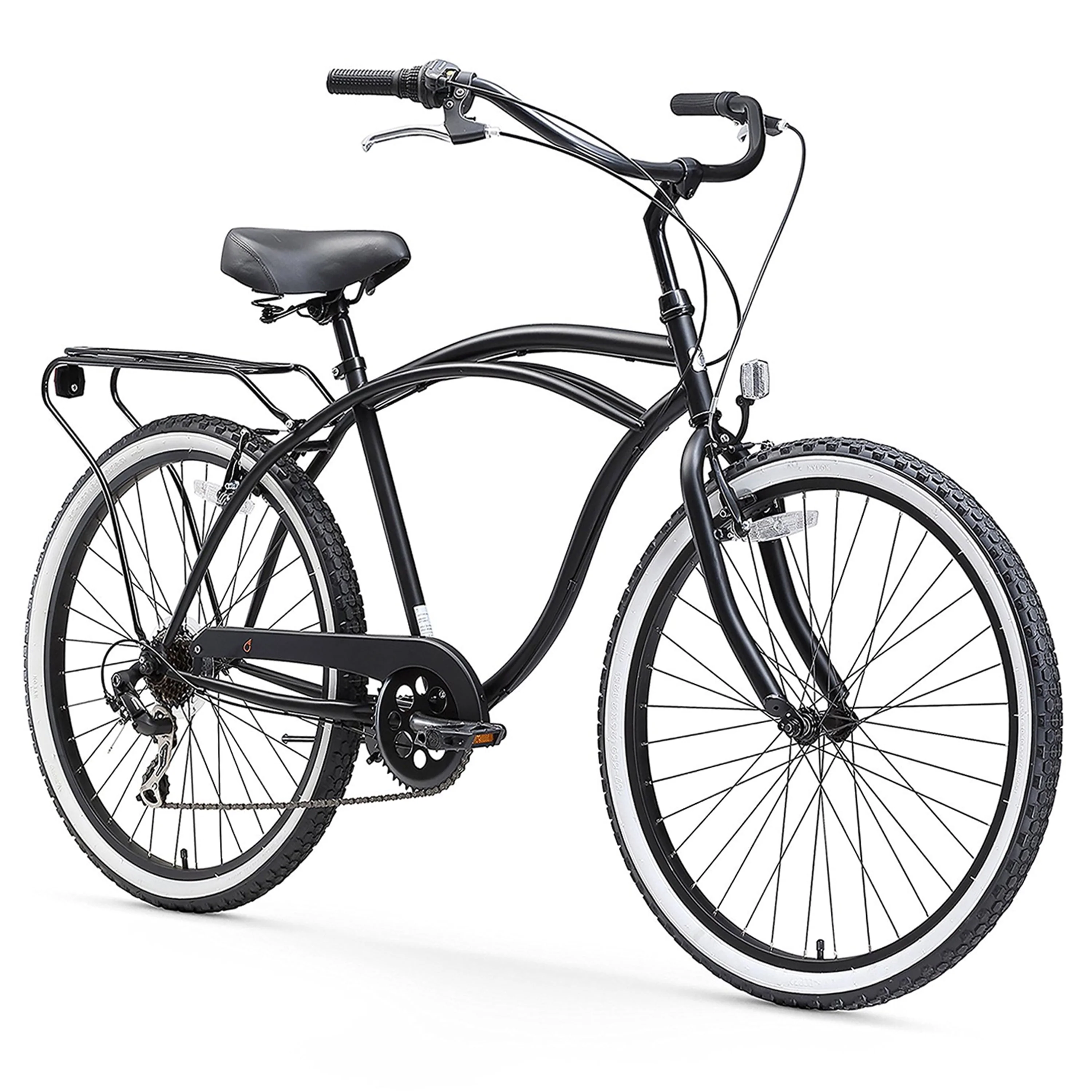 sixthreezero Around the Block Men's 7-Speed Beach Cruiser Bicycle with Rear Rack, 26 In. Wheels, Matte Black