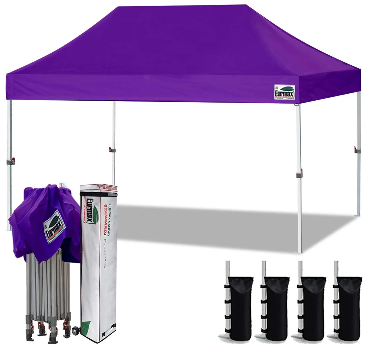 Eurmax 10'x15' Ez Pop Up Canopy Tent Commercial Instant Canopies with Heavy Duty Roller Bag,Bonus 4 Sand Weights BagsPurple)