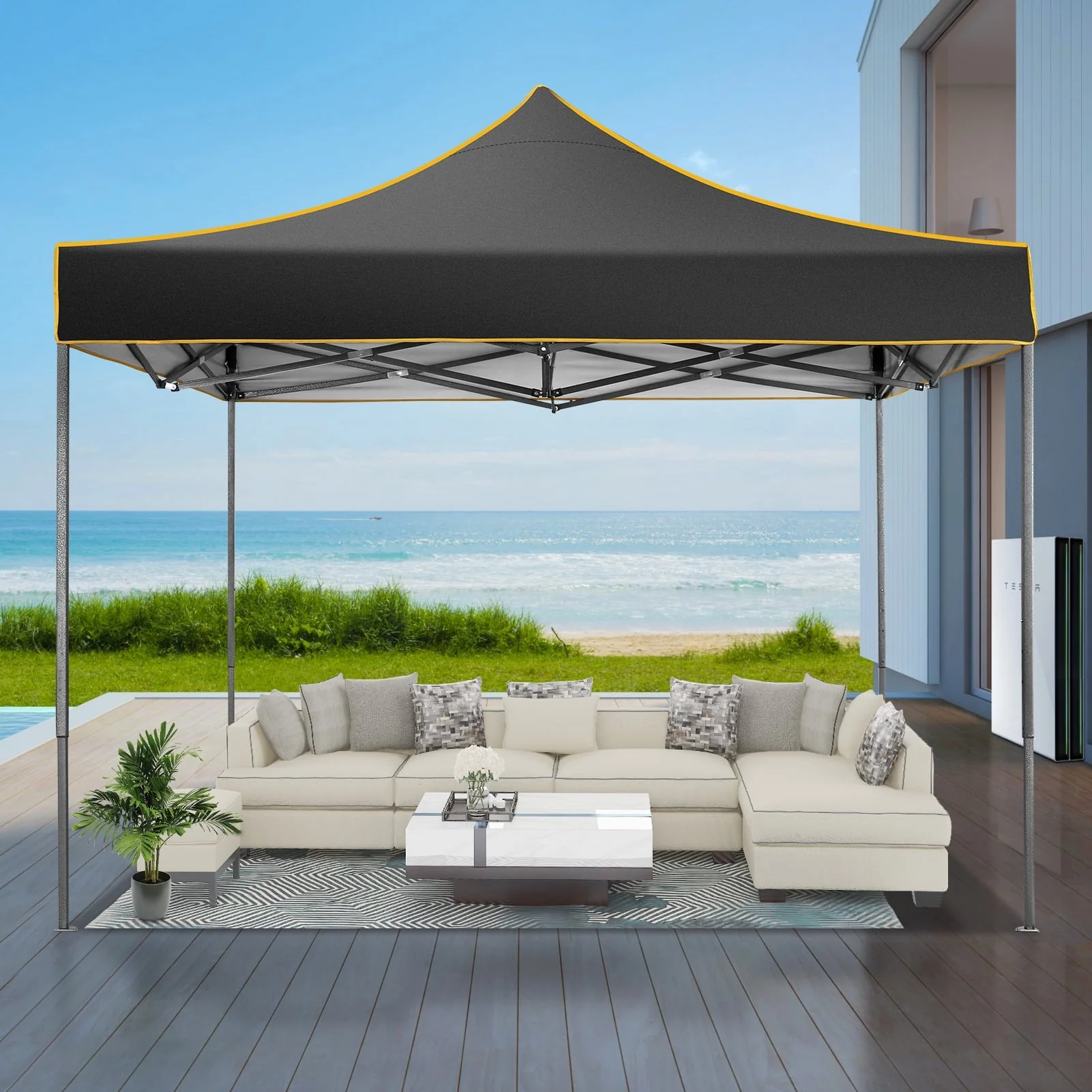 GANWAY 10'x10' EZ Pop up Canopy Tent Outdoor Party Instant Sun Shade Sun Shelter Portable Folding Beach Canopy with 4 Stakes & 4 Ropes & Carrying Bag, Black