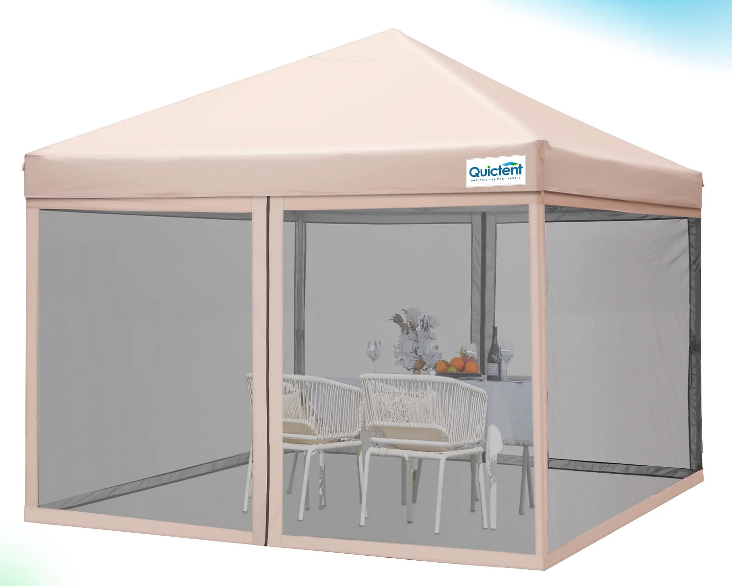 Quictent 6.6x6.6 Pop up Canopy Tent with Mosquito Netting Sreen House Room Tent Screened Roller Bag Included (Tan)