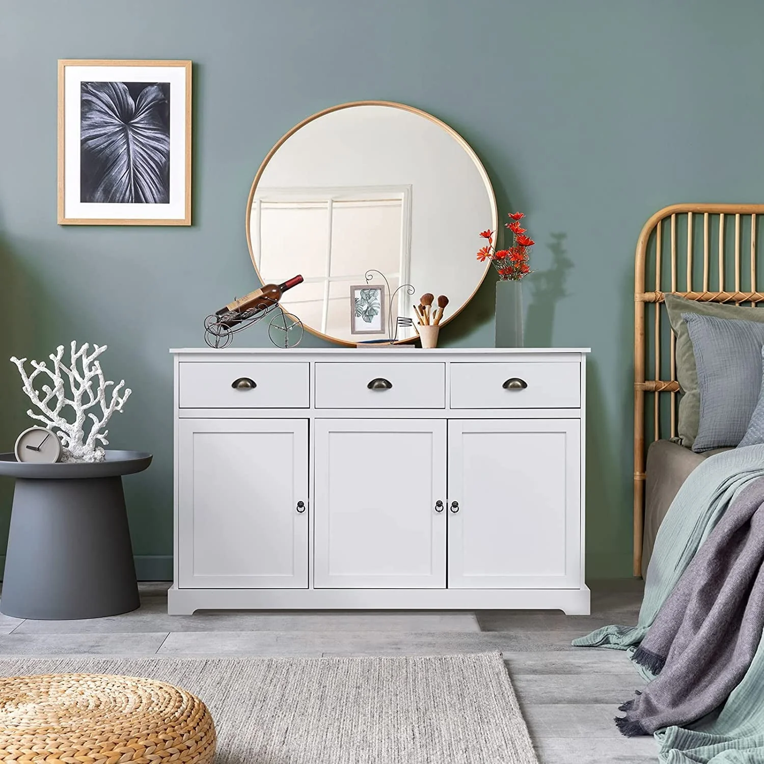 Erinnyees Sideboard Storage Cabinet with 3 Drawers and 3 Cabinets, Buffet Cabinet for Kitchen, Ding Room, Living Room, White