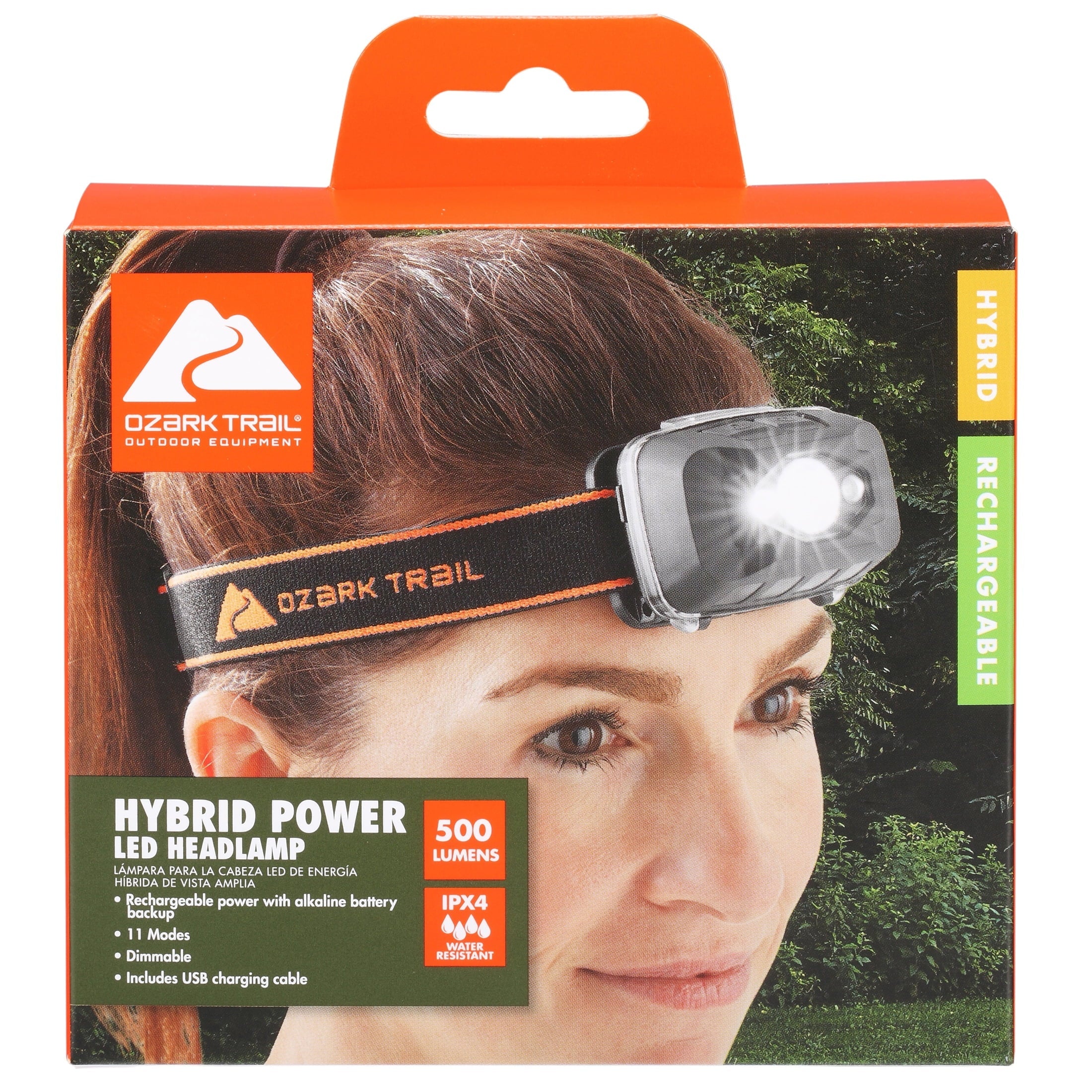 Ozark Trail 500 Lumen LED Headlamp with Hybrid Power (Alkaline and Rechargeable Batteries), Black