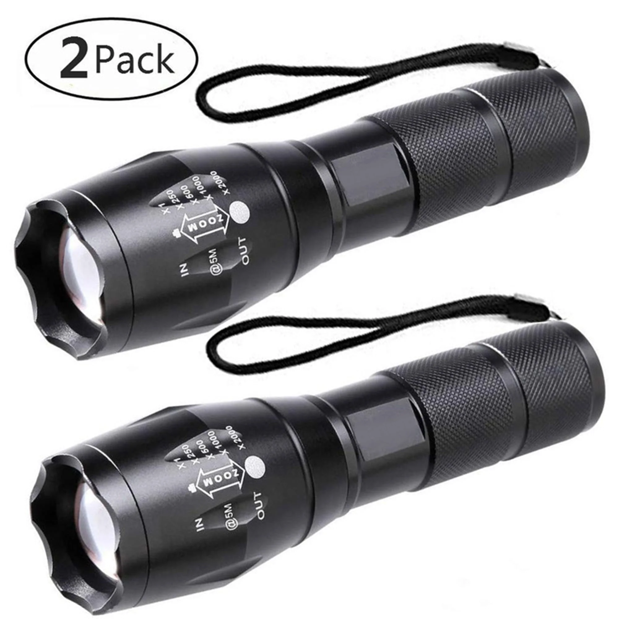 2 Pcs LED Tactical Flashlight, Super Bright 1200 Lumen Portable Outdoor Water Resistant Torch Zoomable Light Flashlight with 5 Light Modes