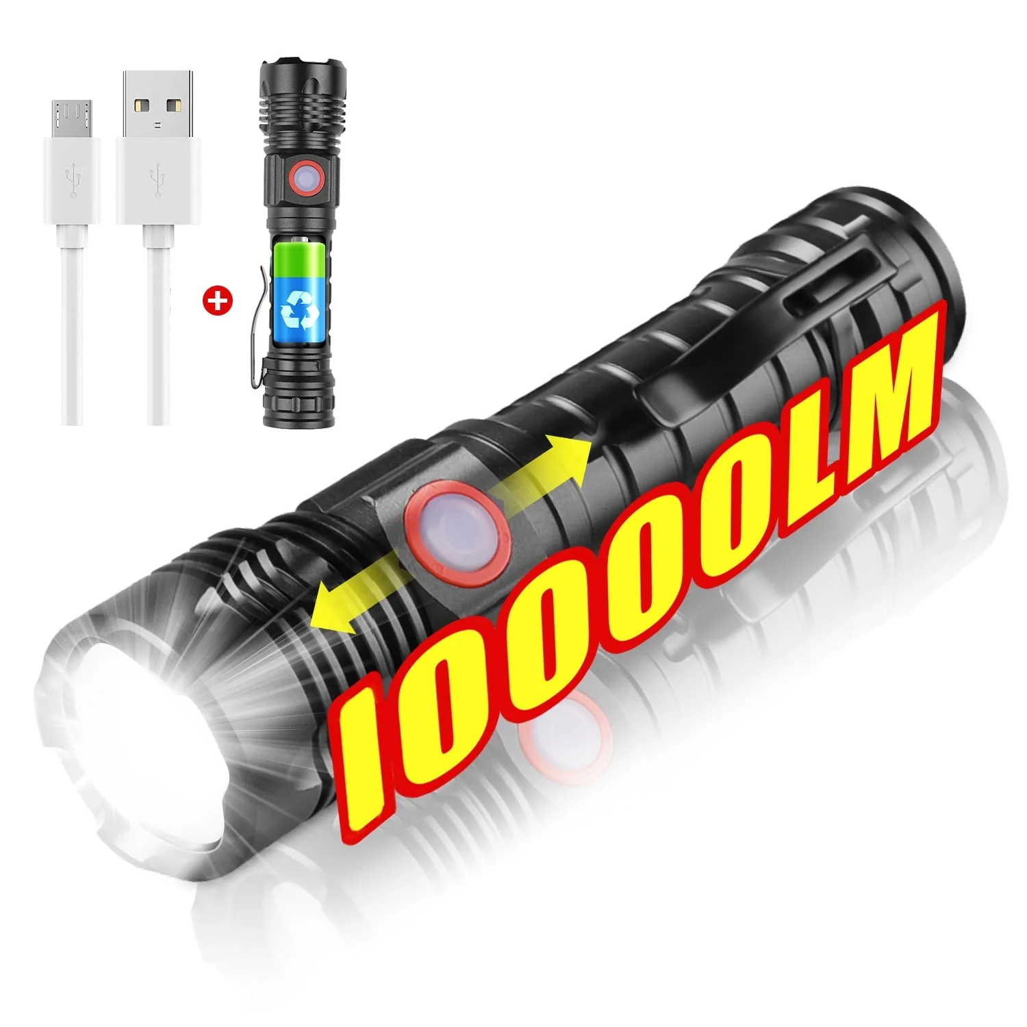 10000 Lumens Powerful Flashlight, 5 Modes LED Flashlight with Clips for Hiking Camping Outdoor Hunting