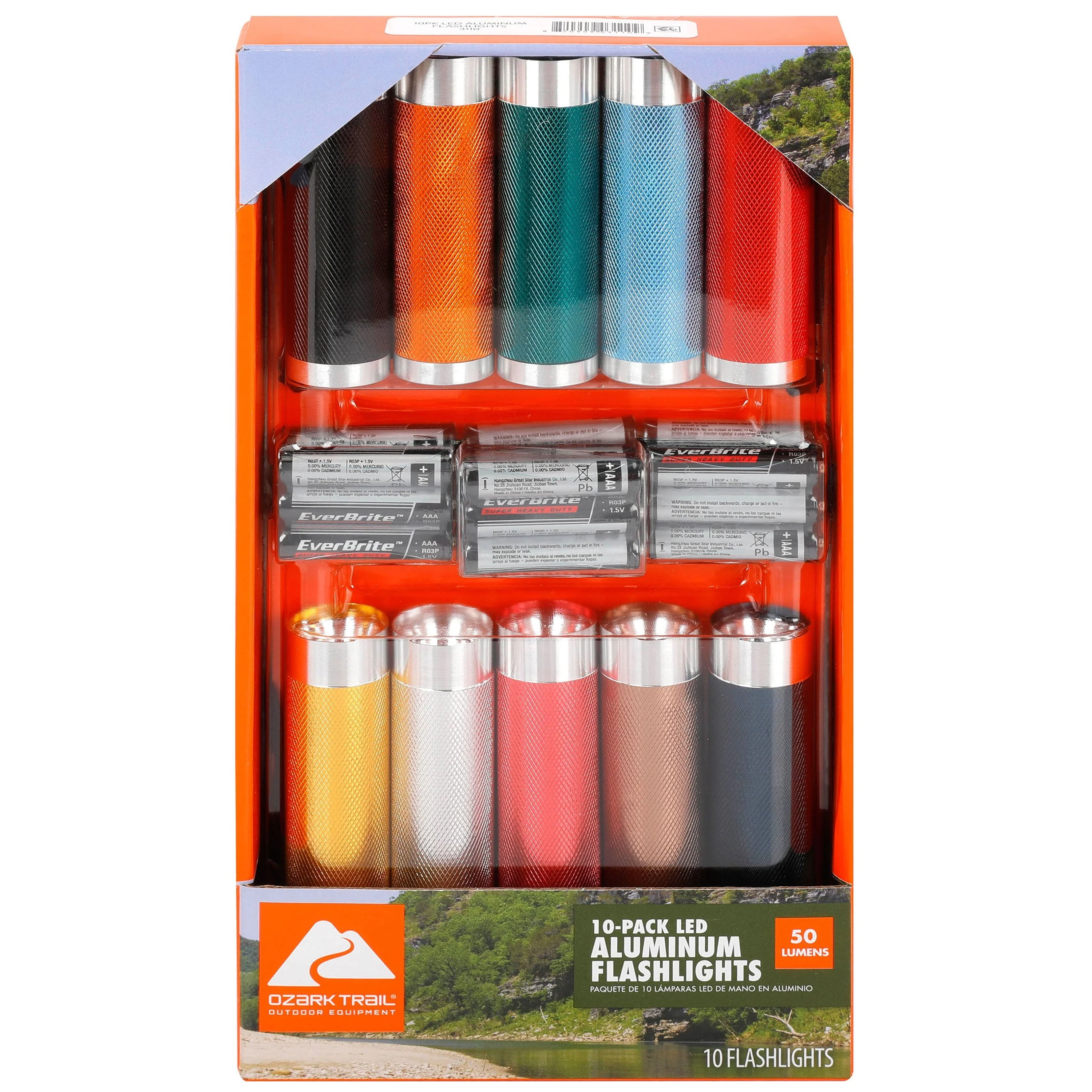 Ozark Trail LED Flashlights, 10-pack, 50 Lumens, Multicolor