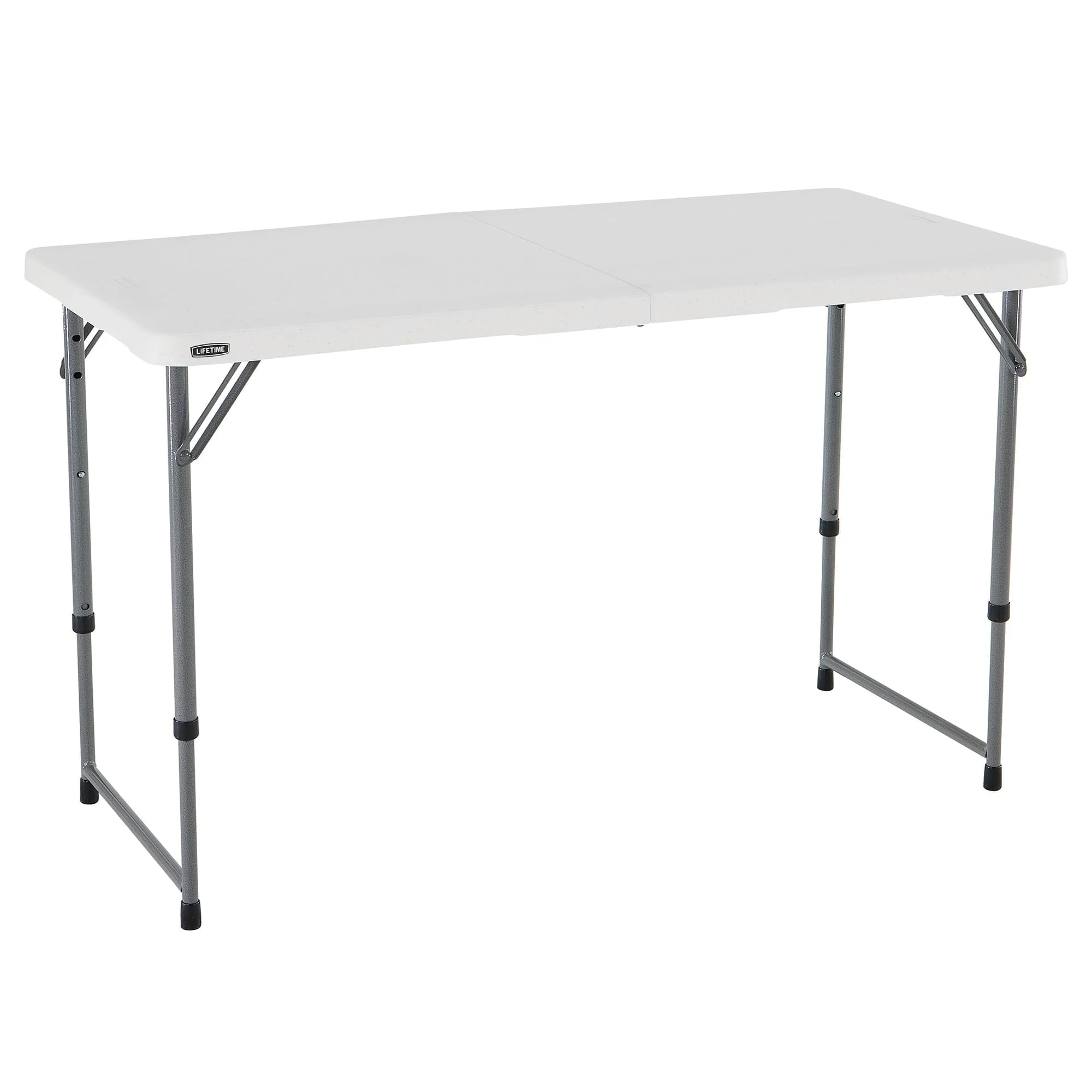 Lifetime 4 Foot Rectangle Fold-in-Half Adjustable Height Table, Indoor/Outdoor Residential Grade, White Granite (4428)