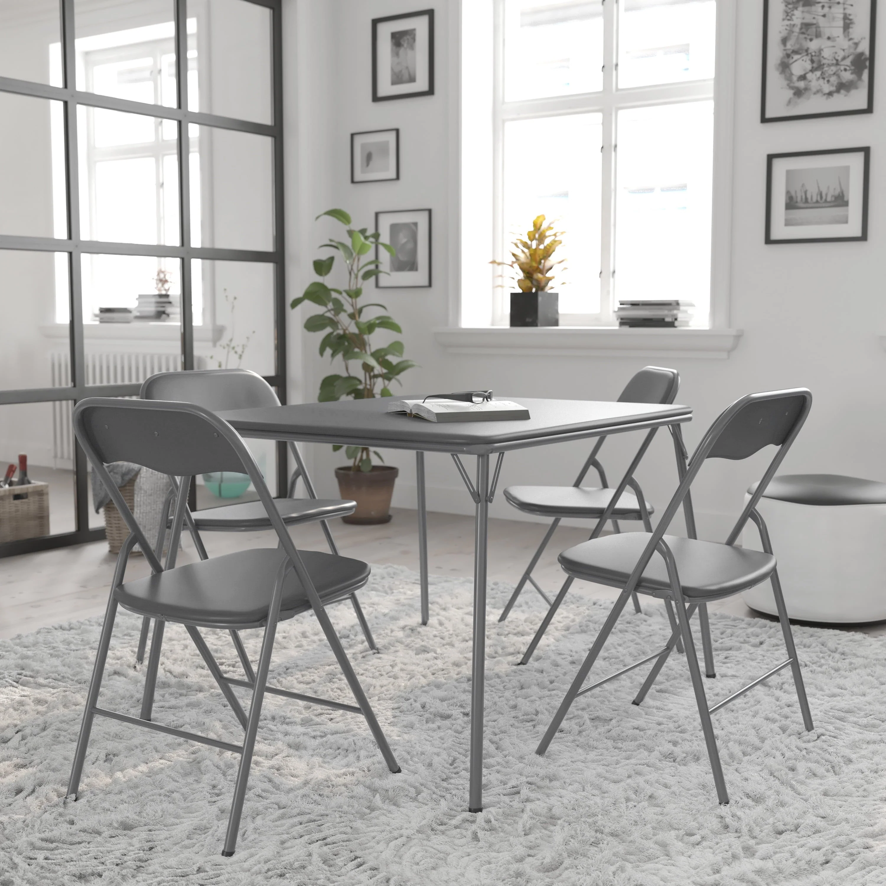 BizChair 5 Piece Gray Folding Card Table and Chair Set