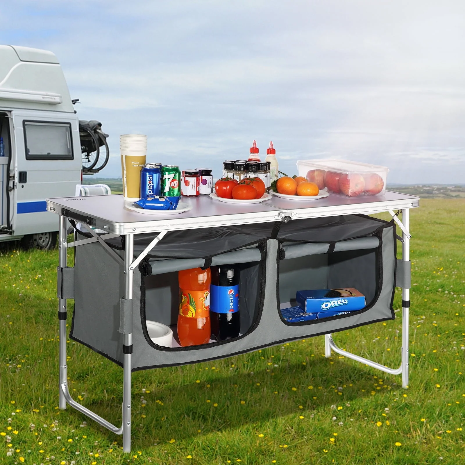 BENTISM Camping Kitchen Table Folding Portable Cook Station 3 Adjustable Heights