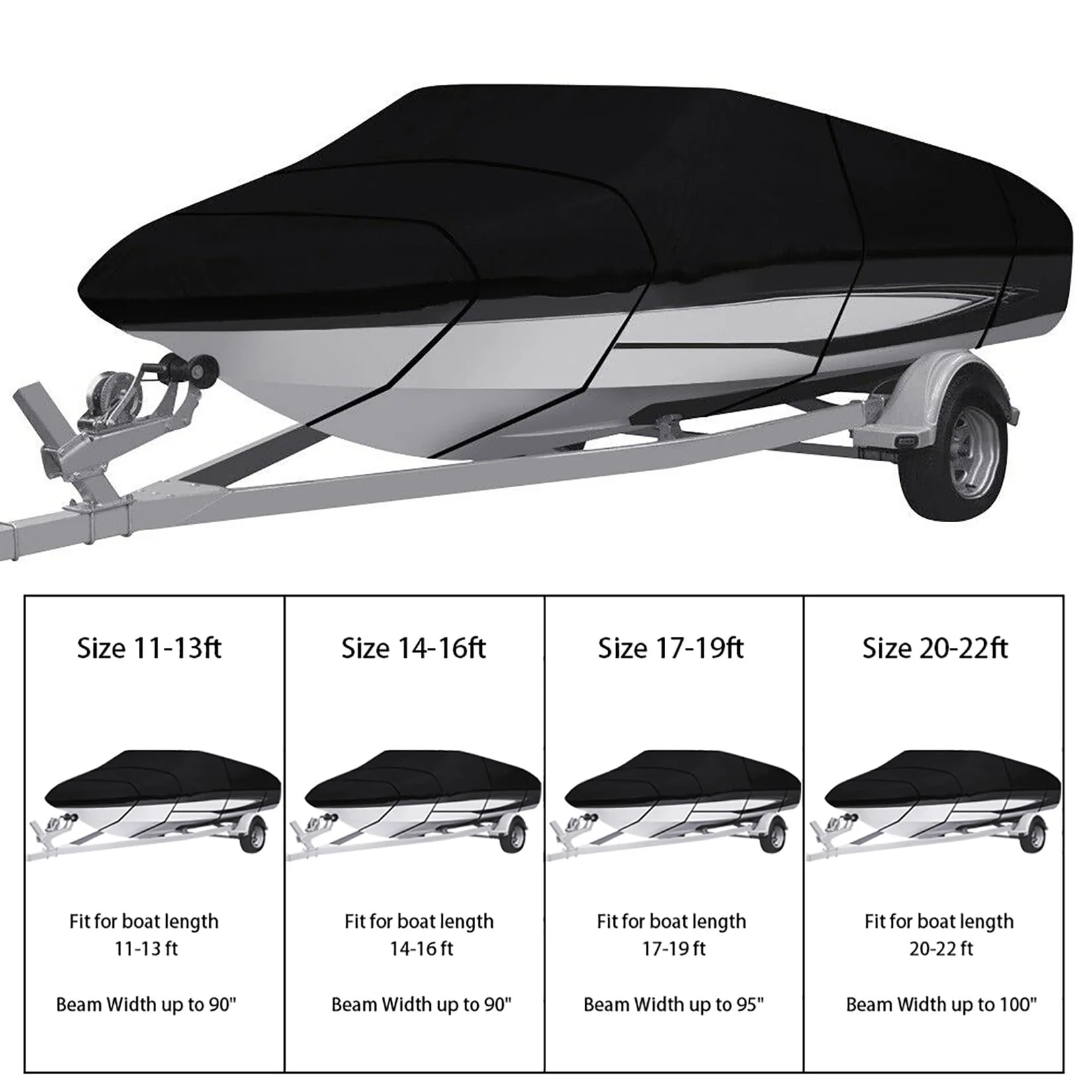 20-22Ft Waterproof Boat Cover Trailerable Heavy Duty Pontoon Black Fit for V -Hull, Tri-Hull, Runabout