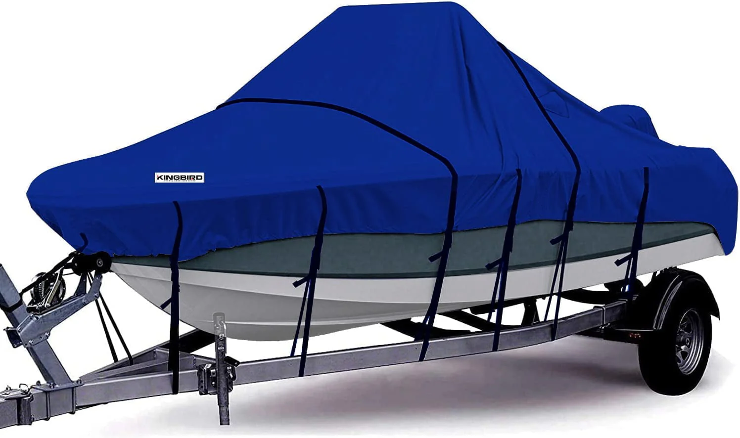 KING BIRD Heavy Duty Center Console Boat Cover, 600D Anti-Fade Marine Grade Oxford, Waterproof Trailerable UV Resistant with Adjustable 2 Tie-Down Straps