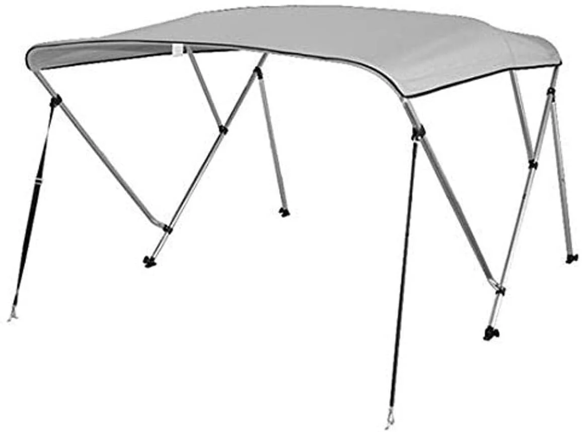SereneLife 3 Bow Bimini Top - 2 Straps and 2 Rear Support Poles with Marine-Grade 600D Polyester Canvas (Gray)