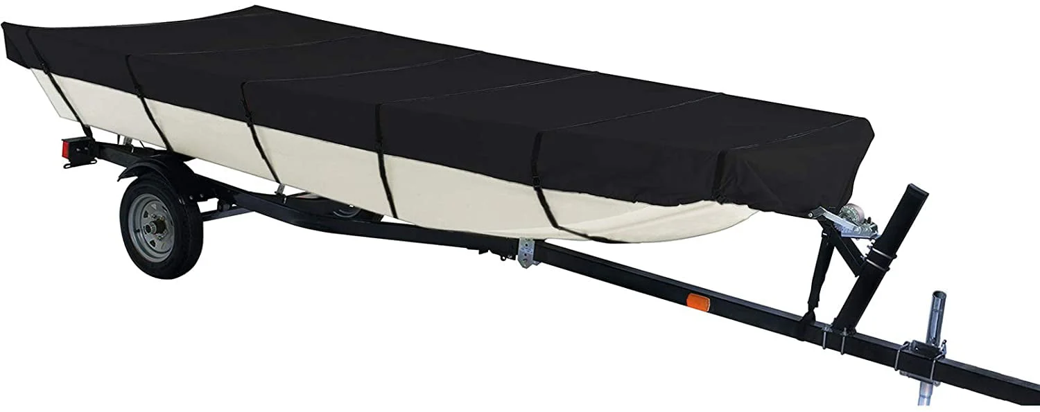 PET-U Boat Cover Heavy Duty Trailerable Marine Grade Polyester Replacement for Jon Boat Cover 14FT Length Beam Width to 70 Inch