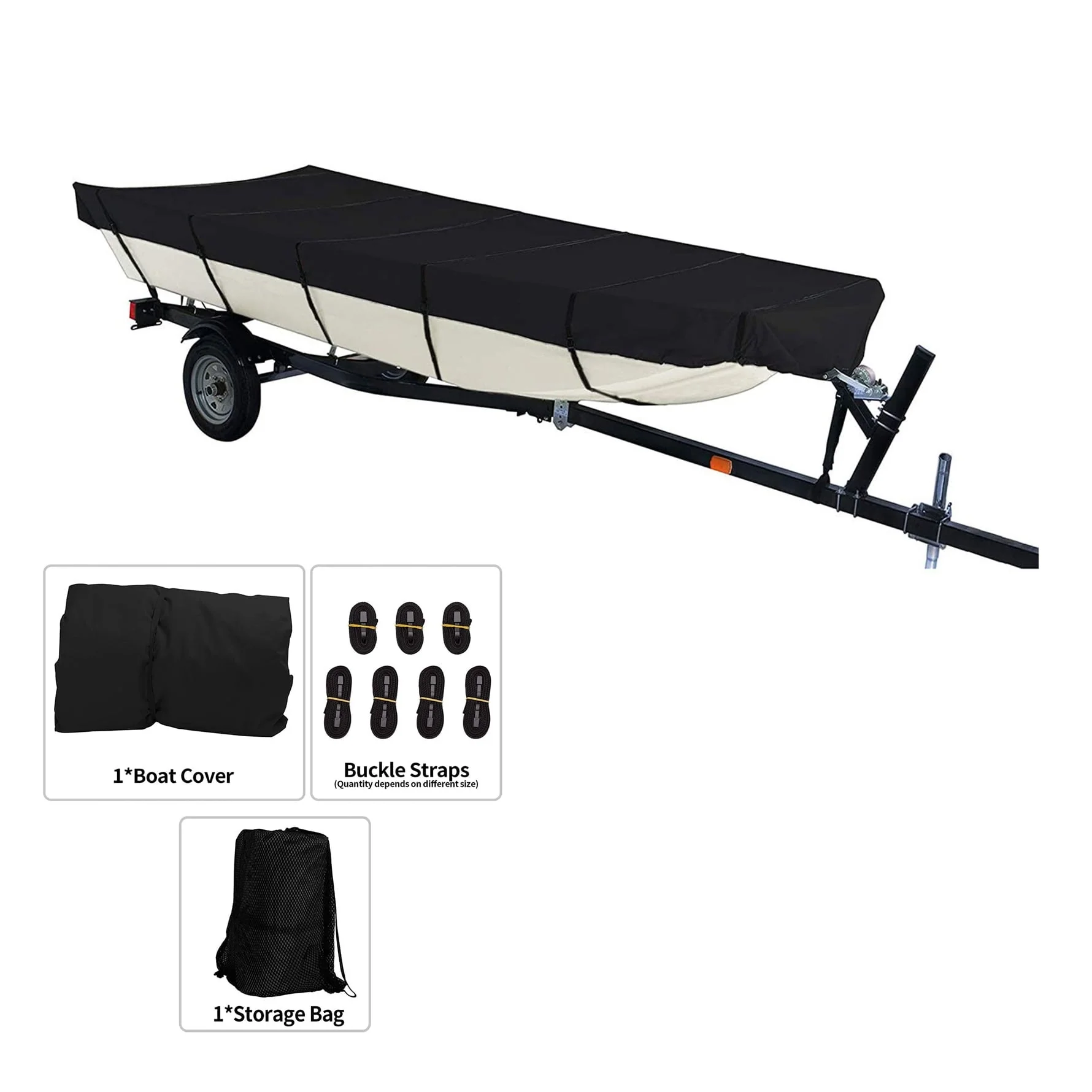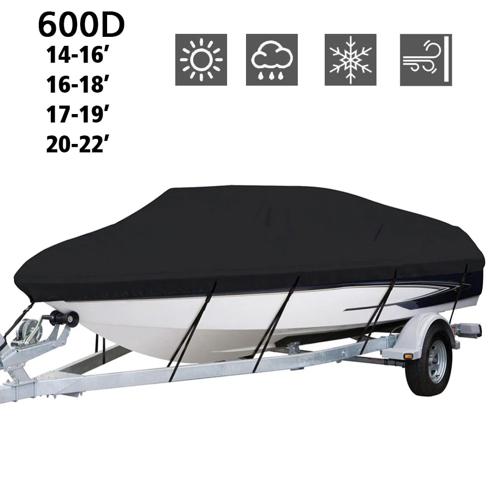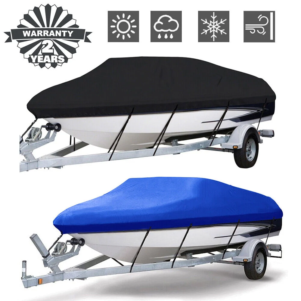 Waterproof 600D Marine Grade Heavy Duty Boat Cover Trailerable Fishing Ski Bass V-Hull Runabouts