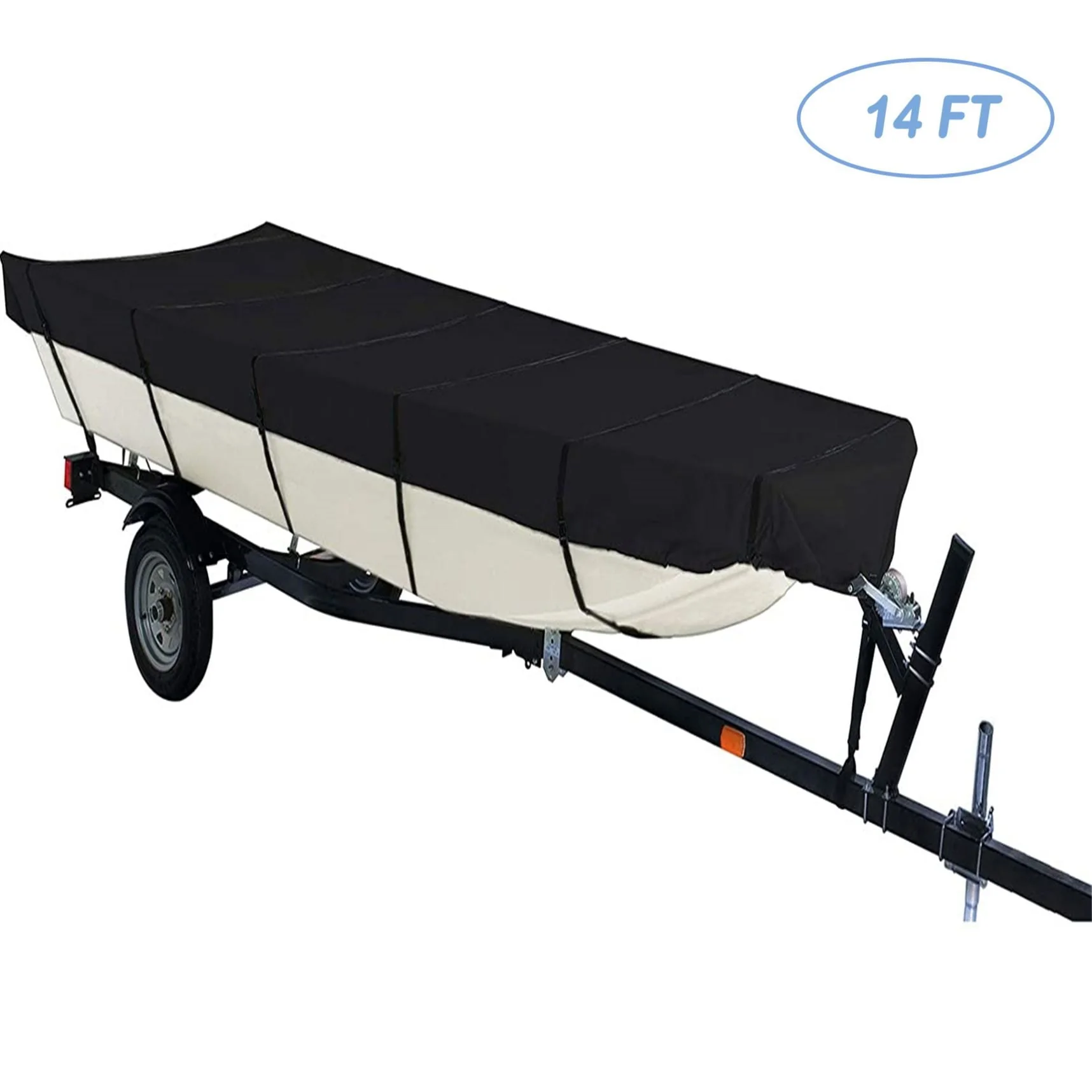 Genrics Boat Cover Waterproof Heavy Duty Trailerable Replacement for Jon Boat 14Ft Long and Beam Width Up to 70 Inch Black