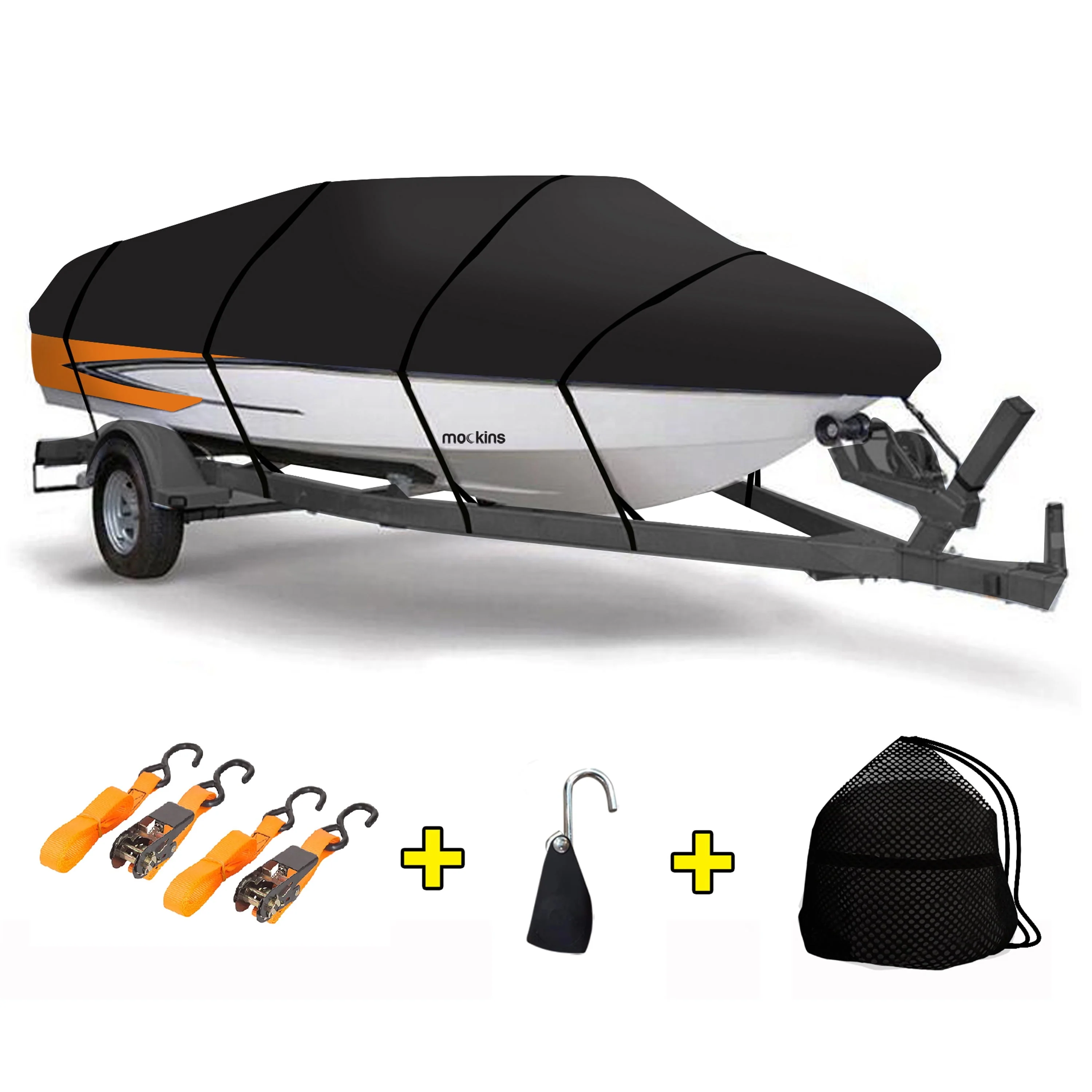 Mockins Waterproof and UV Resistant Trailerable Boat Cover - 17' - 19' x 98" | Bass, Runabout and Fishing Boat Covers | 600D Polyester Oxford