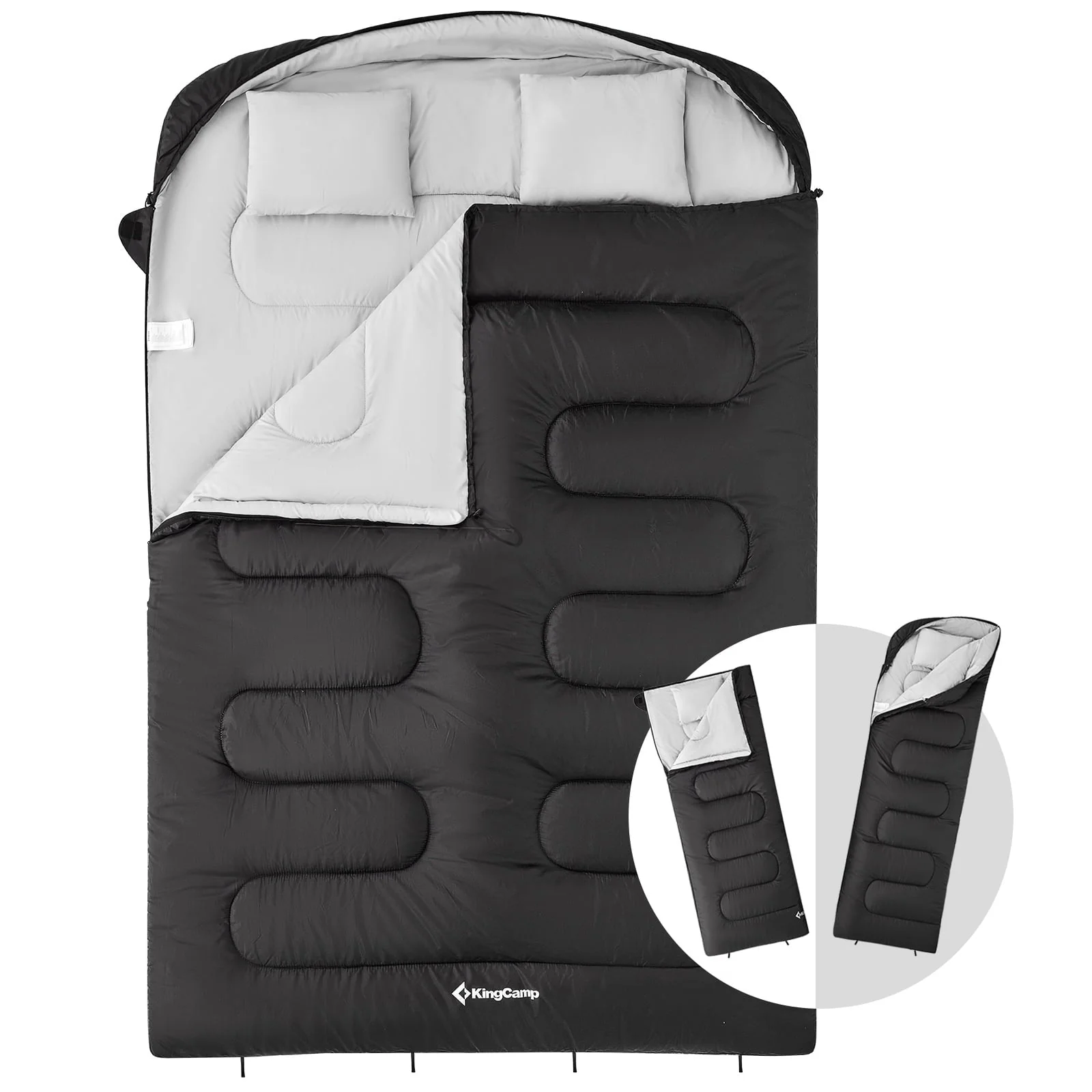 KingCamp Double Sleeping Bag with 2 Pillows for Adult 2 Person 3 Season Camping Sleeping Bag (Black,6.8�?41�?