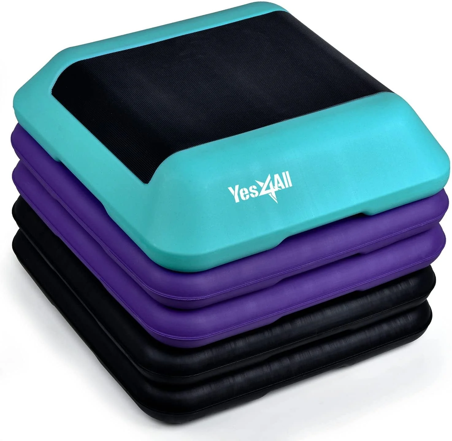 Yes4All Adjustable High Step Aerobic Platform, 16 in x 16 in, for Aerobic Step Exercises (Teal/ Purple/ Black)