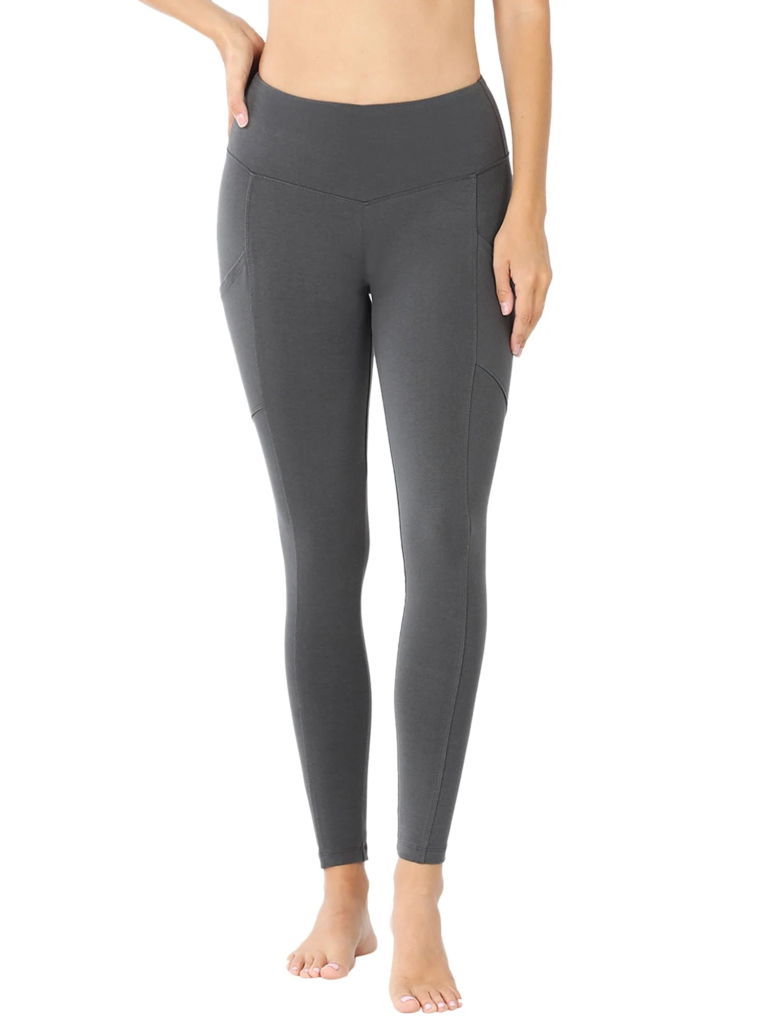 Zenana Women's & Plus (S-3X) Casual Cotton Stretch Active Wide Waistband Tight Leggings with Pockets