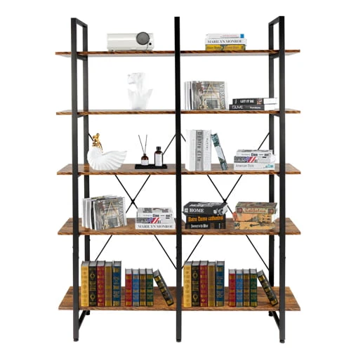 Ktaxon 5-Tier Open Bookcase, Wood and Metal Etagere Bookshelves Display Storage Rack for Home Office Decor, Vintage Brown