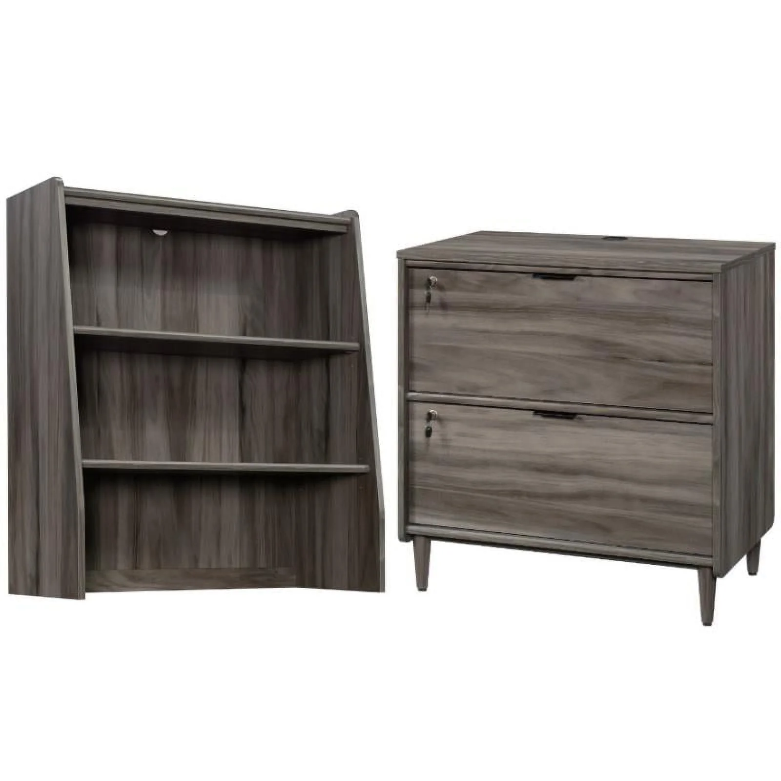 Home Square 2-Piece Set with Lateral File Cabinet & Library Hutch in Jet Acacia