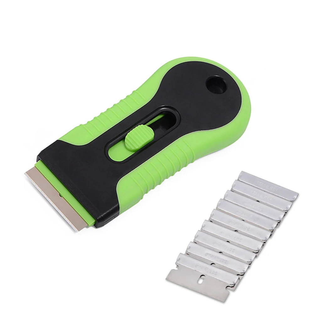 Car Window Glass Adhesive Ceramic Shaving Scraper Blade Tint Vinyl Wrap Glue Remover Cleanser with 10 PCS Blades
