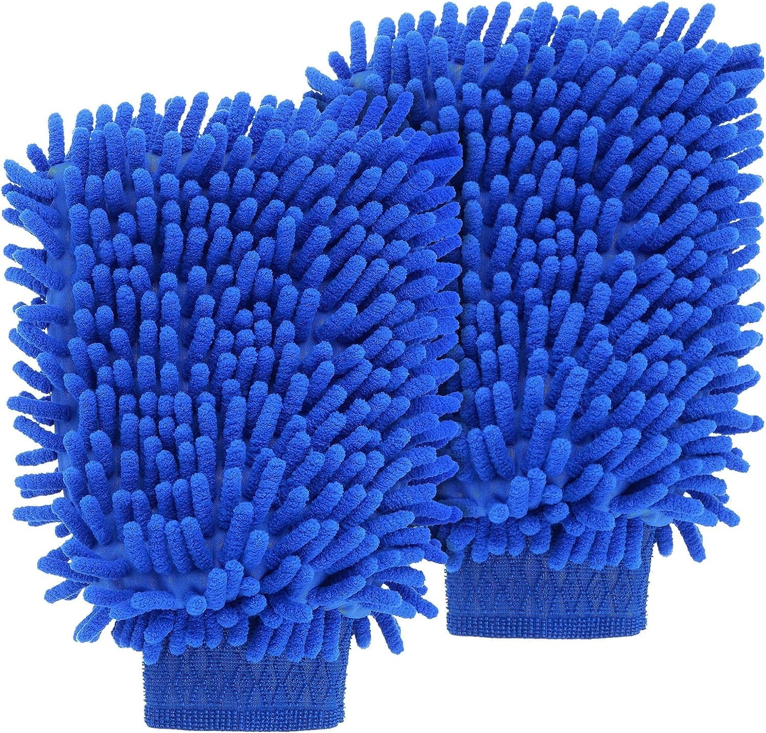 2 PCS Wash Cloths Car Cleaning Supplies Microfiber Towels Brush Wheel Detailing Kit Care Mitt Long Handle Sponge Interior Cleaner Drying Scratch Guard Shampoo Washing Wipes Weave Towel (blue)