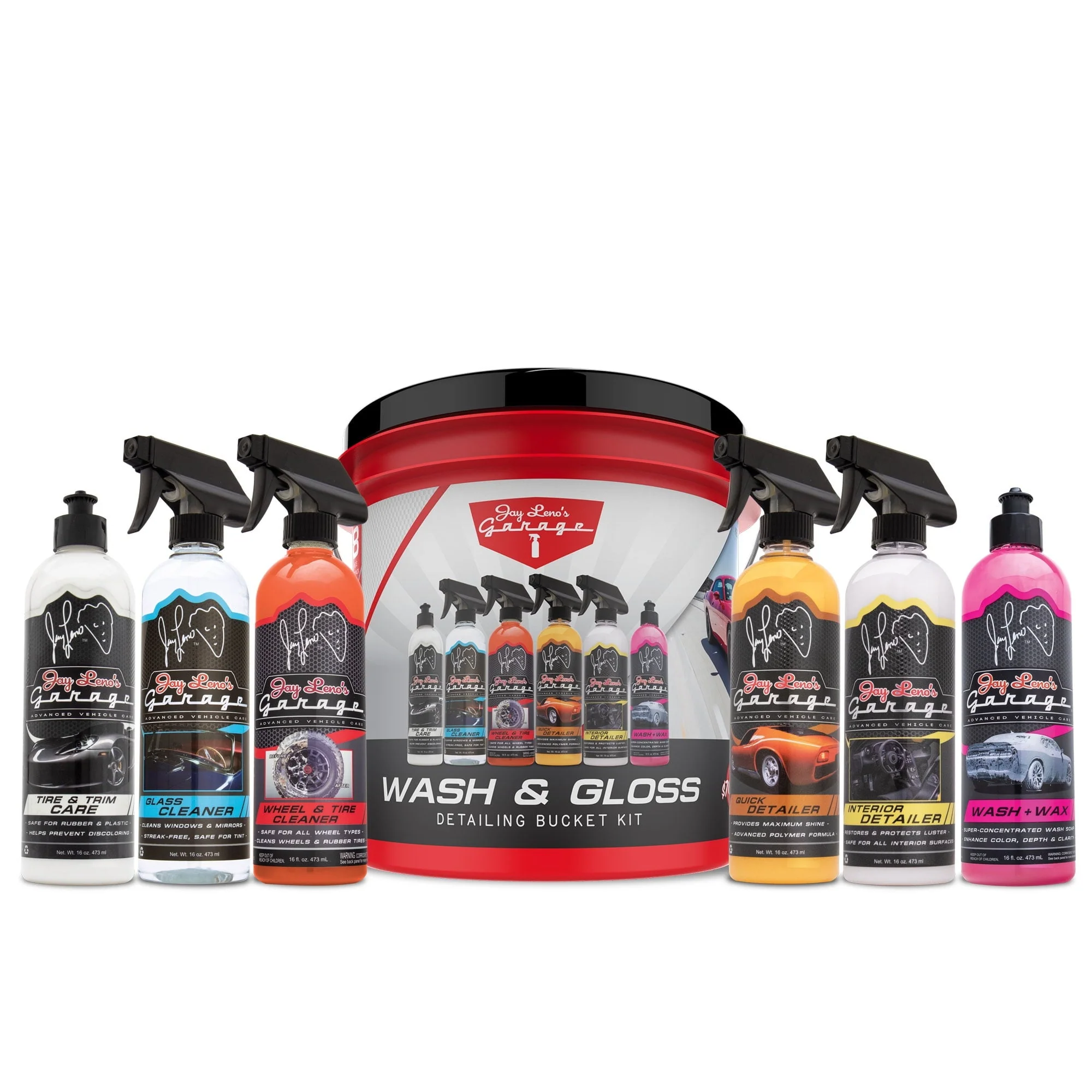 Jay Leno's Garage Wash & Gloss 8-Piece Detailing Bucket Kit - Wash, Clean & Protect