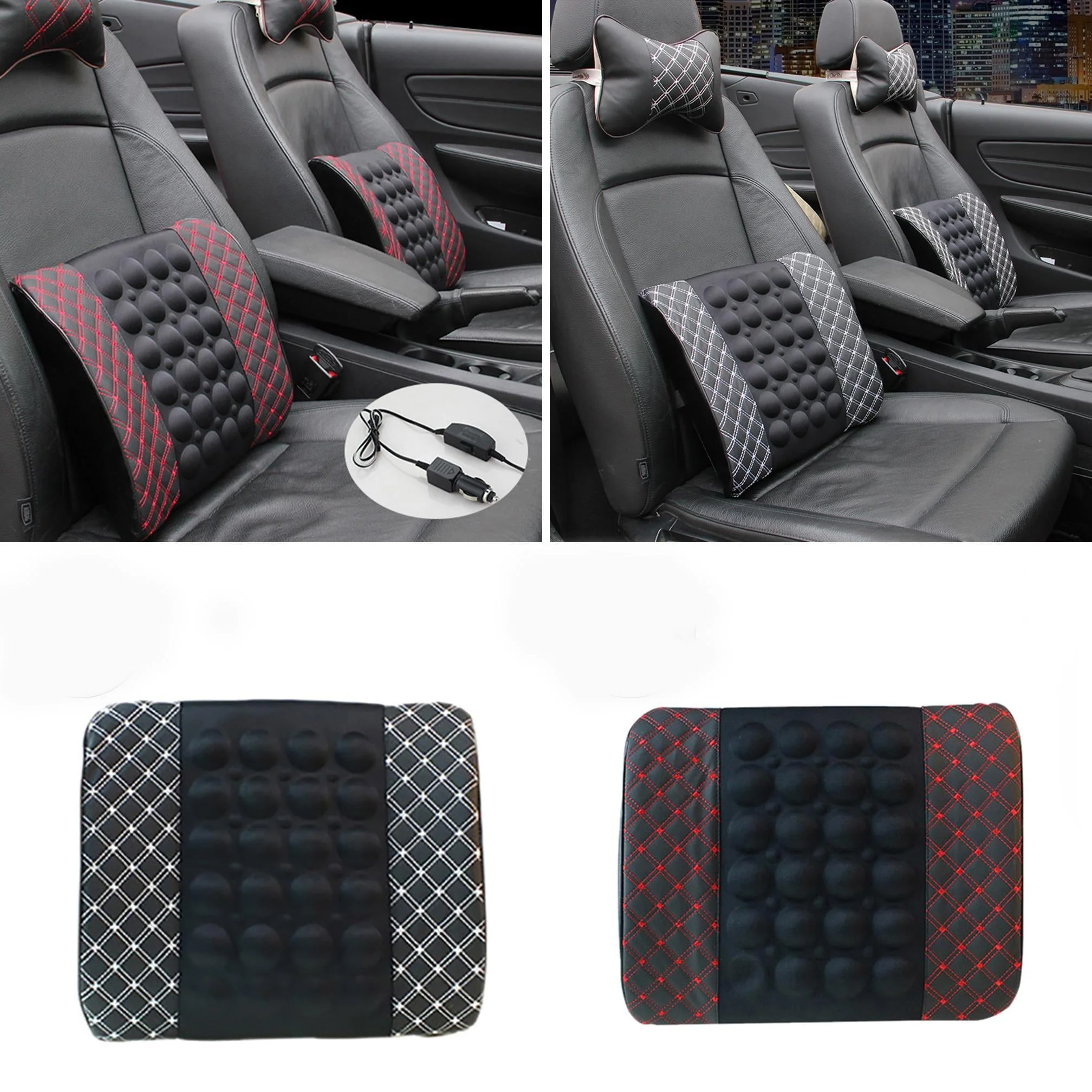 Walbest 12V Car Electric Massage Cushion Lumbar Massage, Car Seat Back Support Waist Cushion, Lumbar Relaxation Devices, Car Waist Pad Pillows for Driver Car Cushion Relieve Body, Microfiber Leather