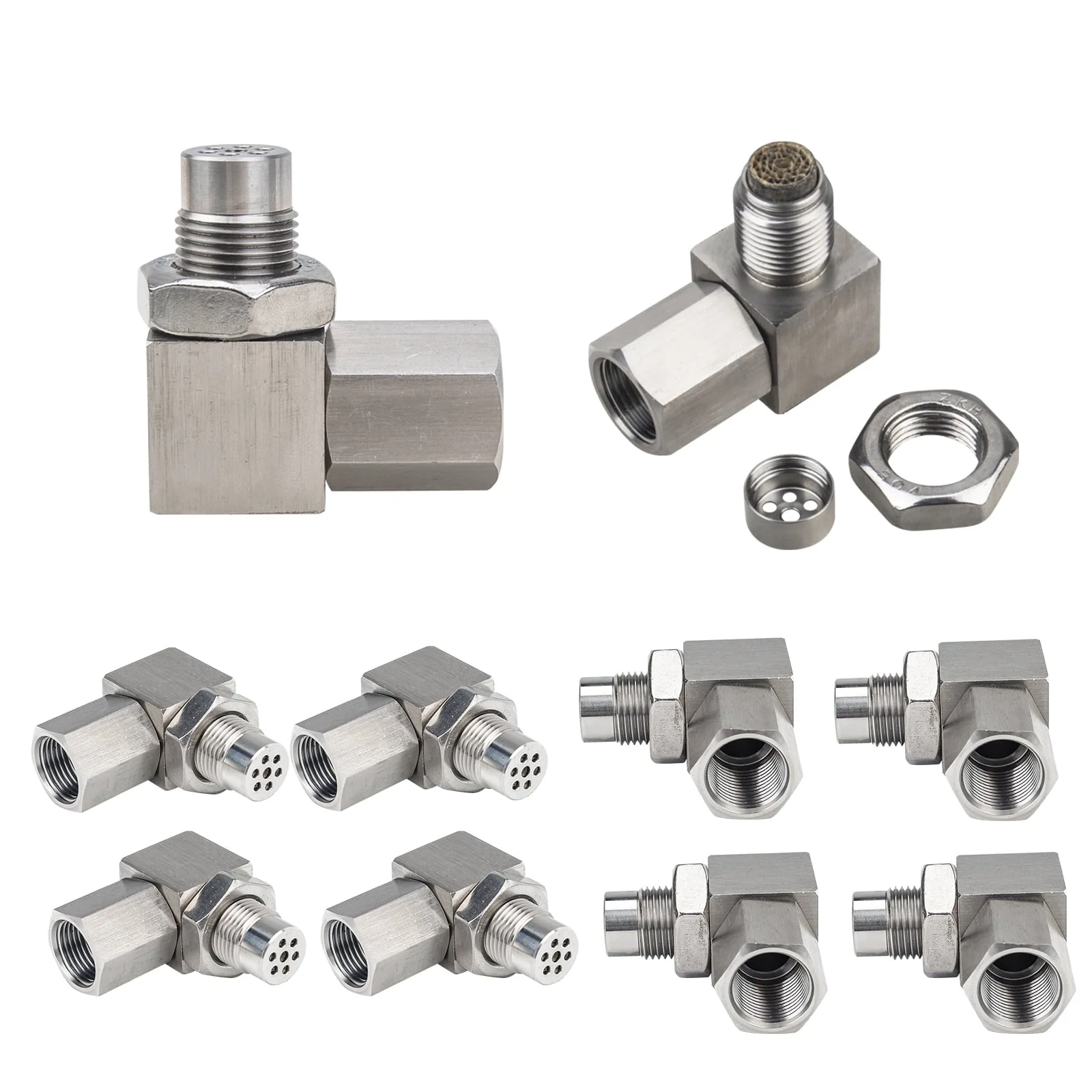 3mirrors 90-Degree 02 Sensor Check Engine Light Eliminator Adapter M18x1.5 Mounting Fittings Accessories - Stainless Steel, 10-Pack