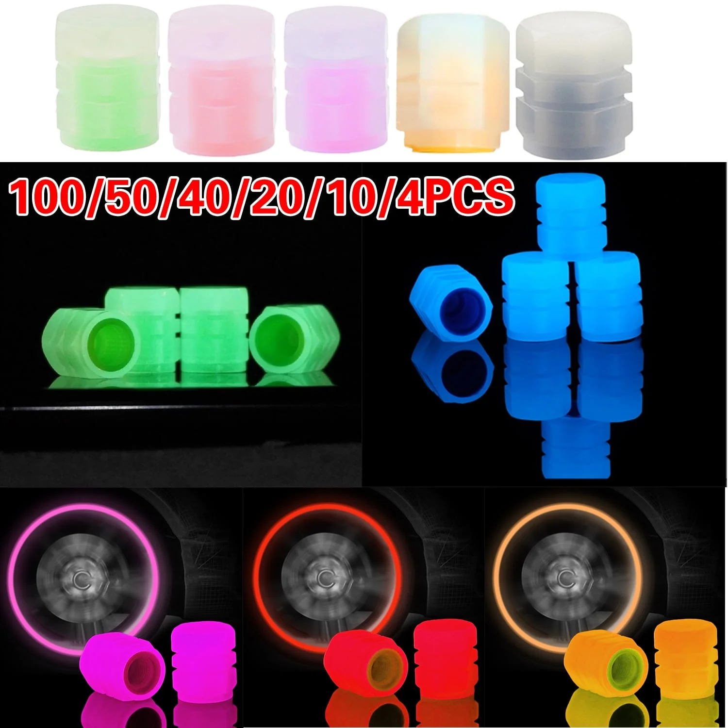 Tire Caps, 100/50/40/20/10/4 Pack Fluorescent Valve Stem Caps Universal Tire Air Covers for Car, Truck, SUV, Motorcycles, Bike (Green 4pcs)