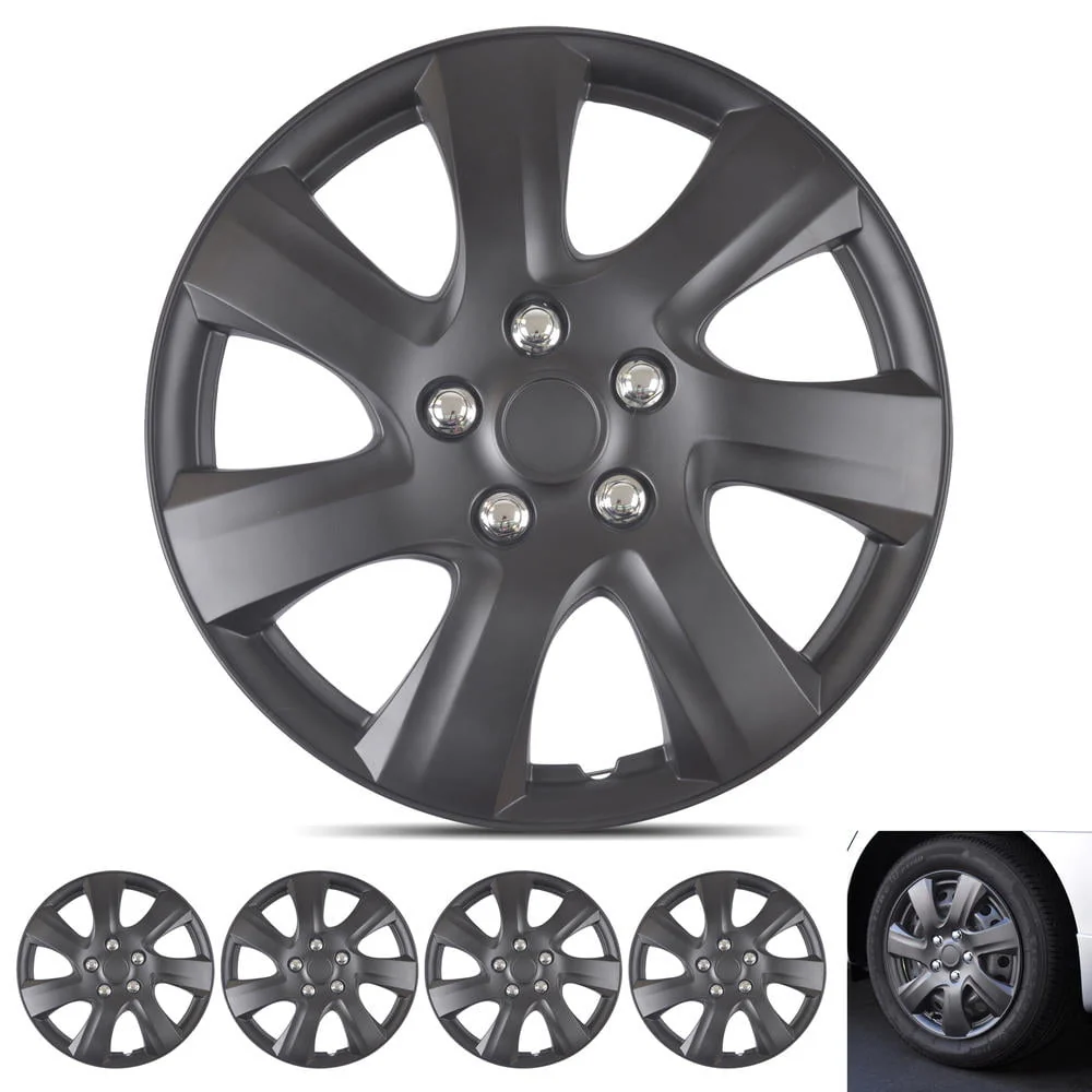 BDK Hubcap Wheel Covers Toyota Camry 2006-2014 Style - 16 Inch Silver Replica Cover, OEM Factory Replacement (4 Pieces) (Matte Black)