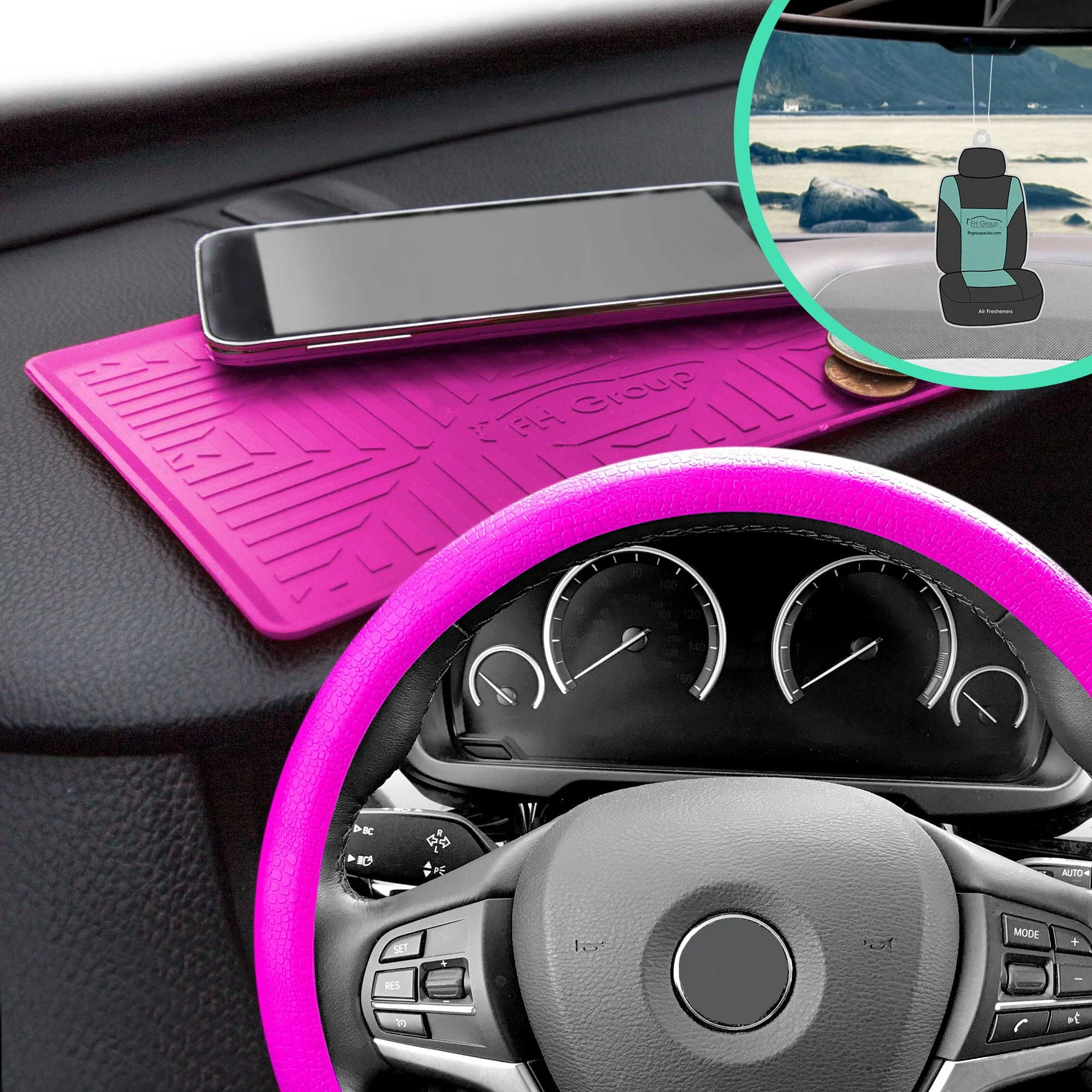 FH Group AFFH3001HOTPINK-FH3011 Silicone Dash Mat, Universal Steering Wheel Cover w. Air Freshener