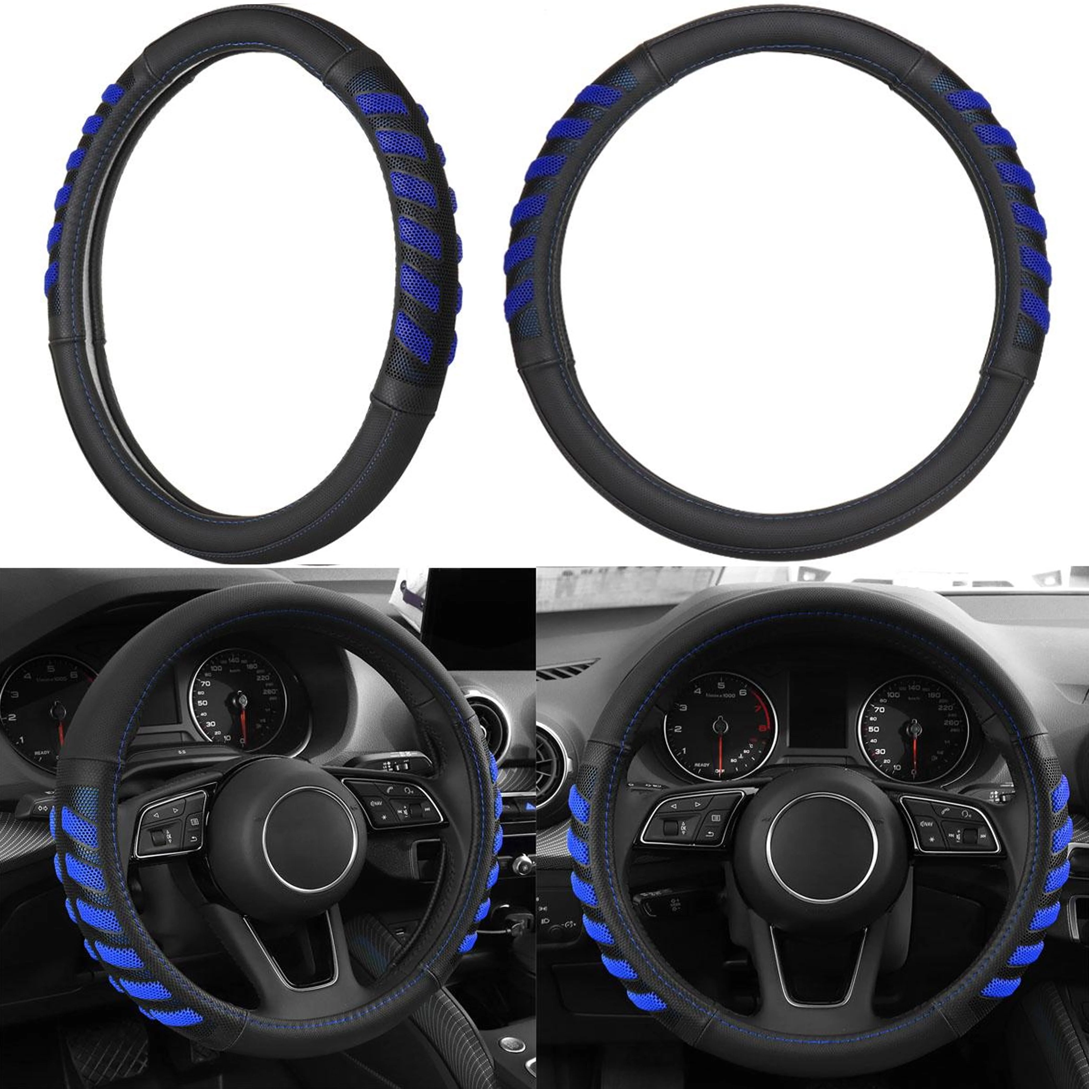 Car Steering Wheel Cover Grip Black Blue Auto Universal High Quality 14.5"-15.5"