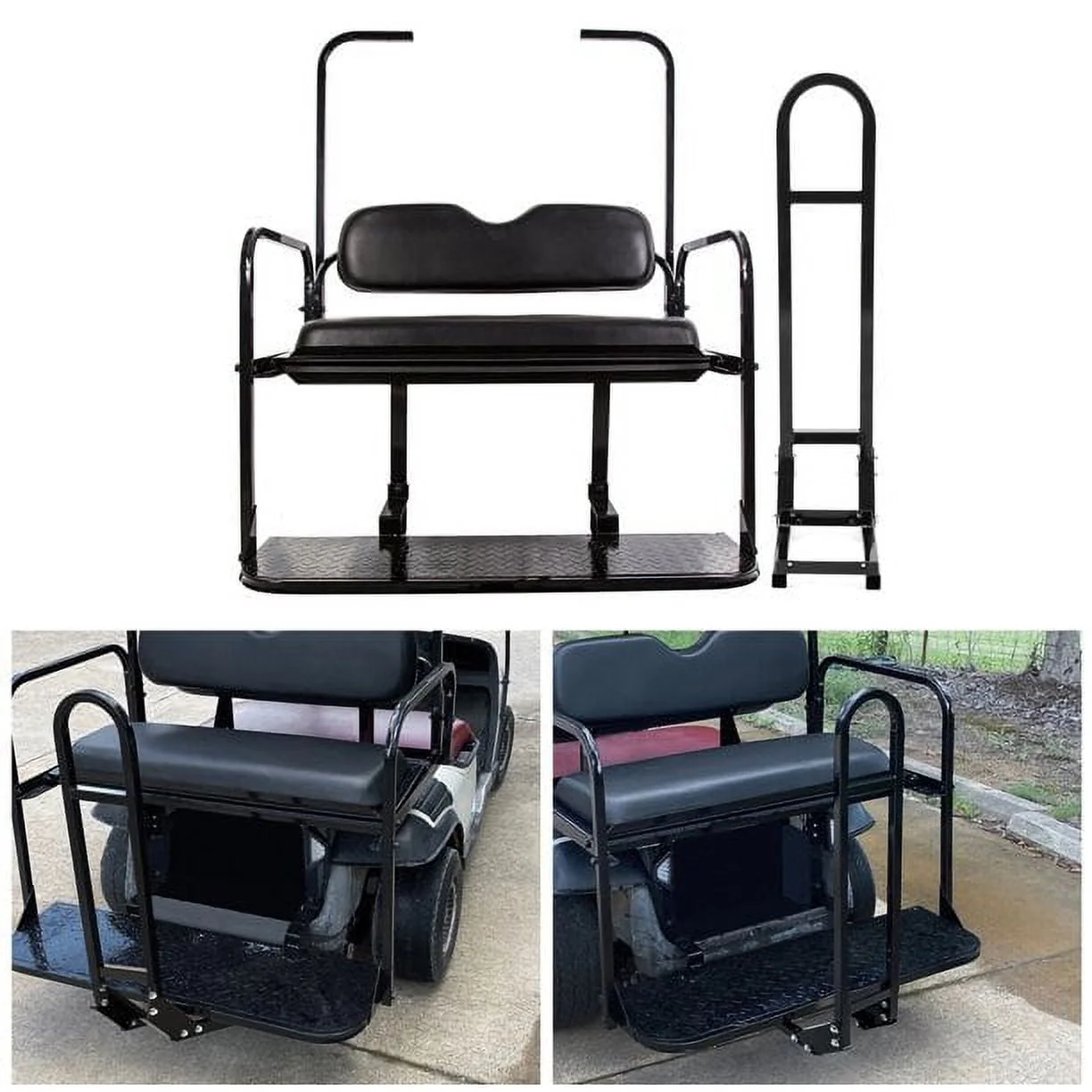 Kojem Black Flip Folding Rear Back Seat Kit & Safety Grab Bar Compatible with 1995-Up EZGO TXT Golf Cart