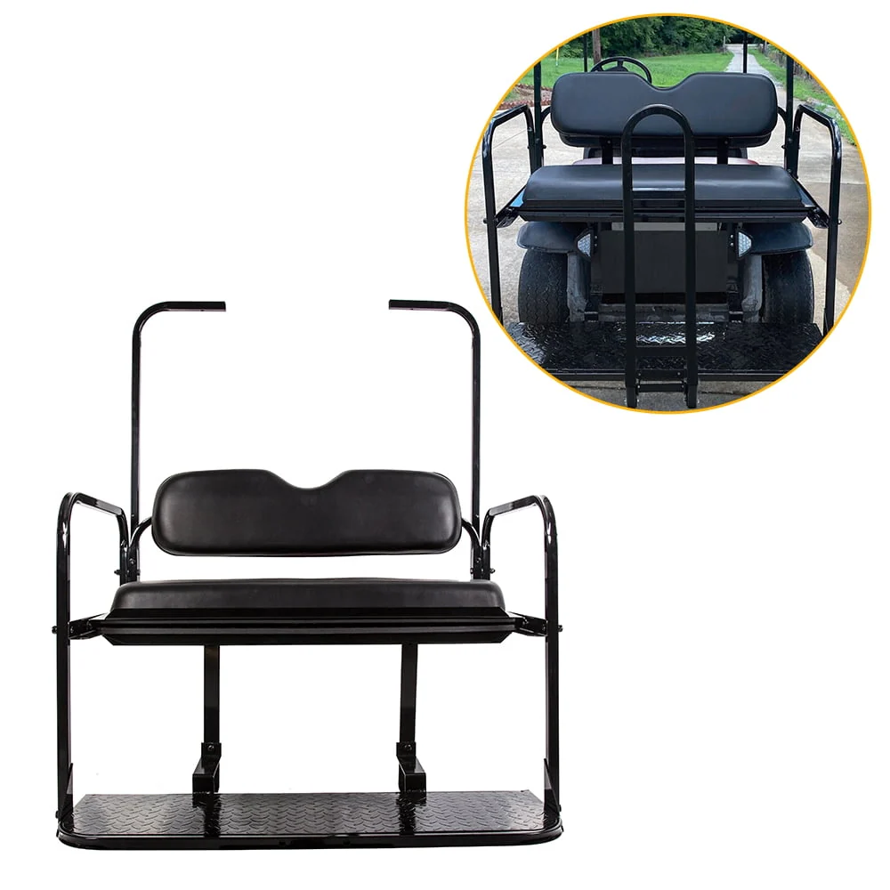 Kojem Flip Folding Rear Back Seat Kit Compatible with EZGO TXT Golf Cart | Black Cushions | 1995 & Up - You Will Receive (2) Packages
