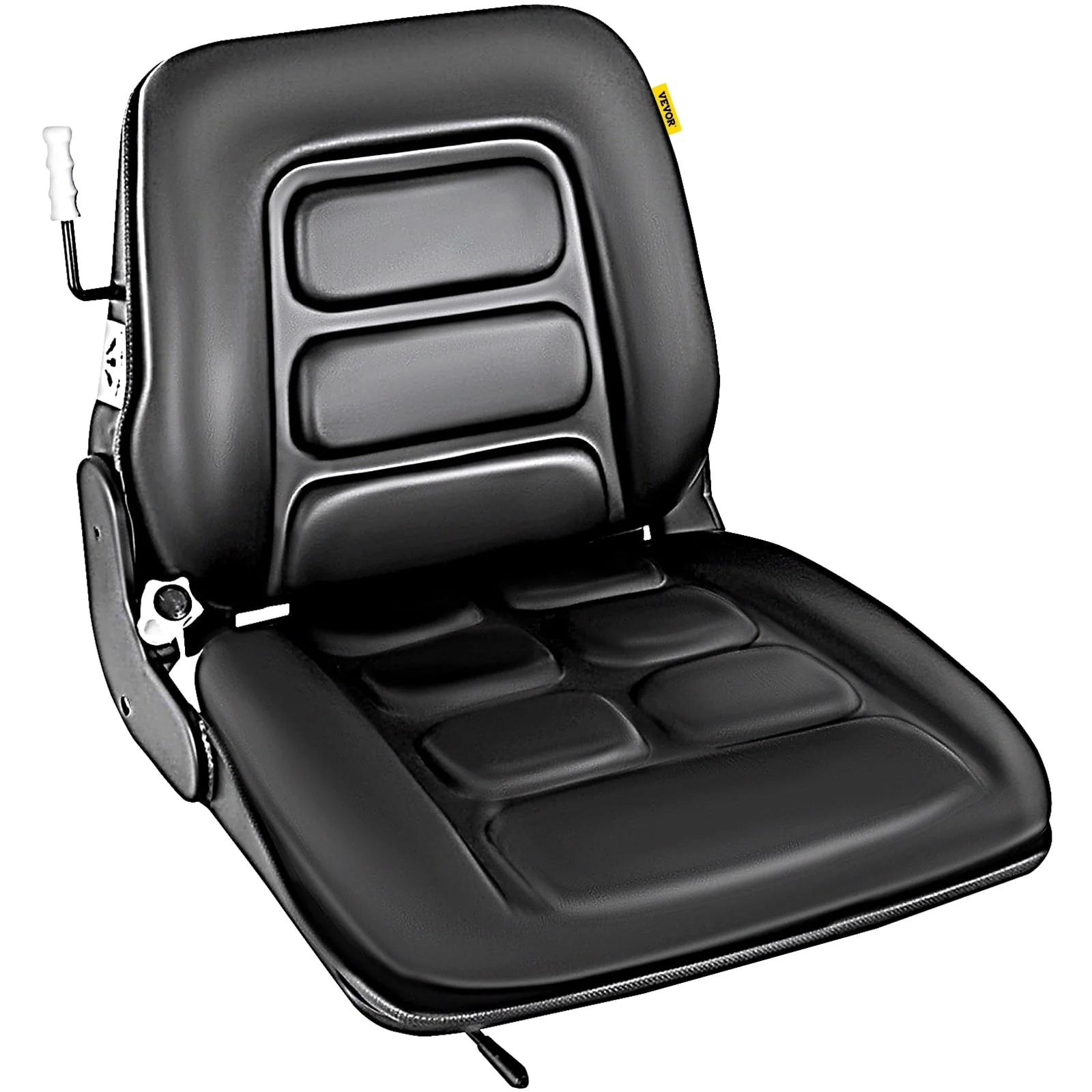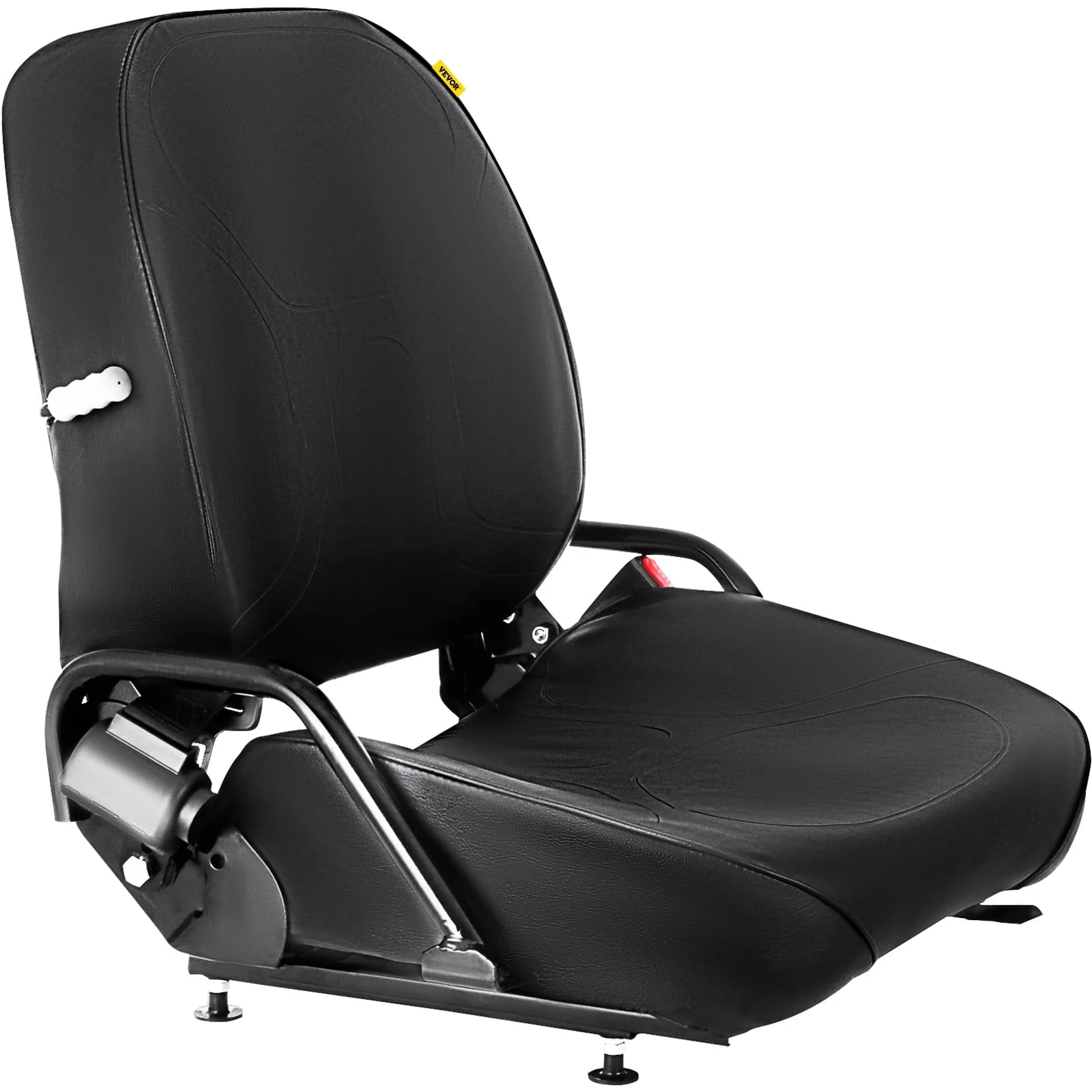 VEVOR Universal Tractor Seat, Compact High Back, Black PVC Lawn and Garden Mower Seat Replacement, Two Drain Holes Steel Frame Forklift Seat, Compatible with Forklift, Excavator, Mower