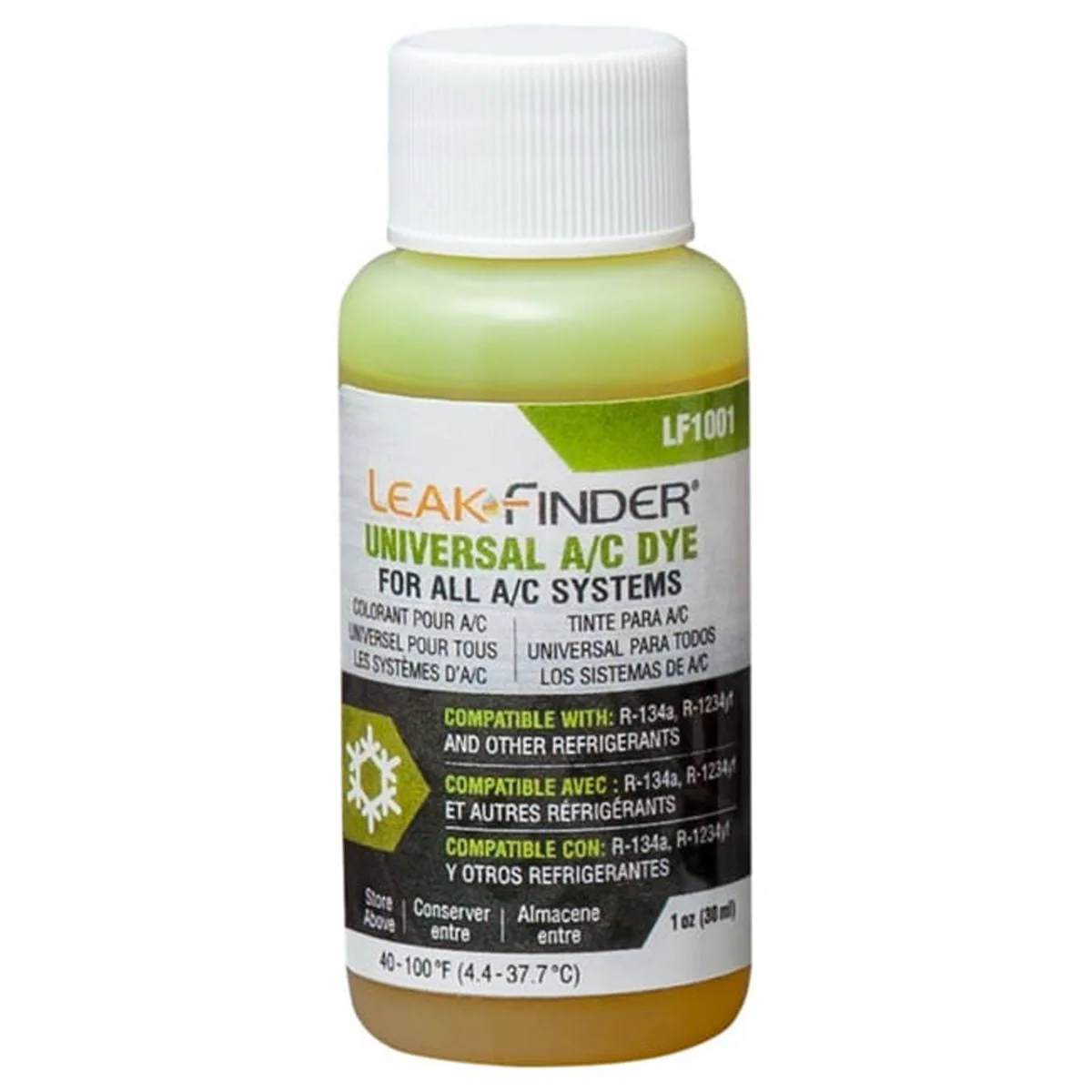 LeakFinder LF1001CS Automotive Universal Air Conditioner Refrigerant Leak Detection Dye, Services R134a, R-1234yf Systems, 1oz AC Fluorescent Dye Bottle