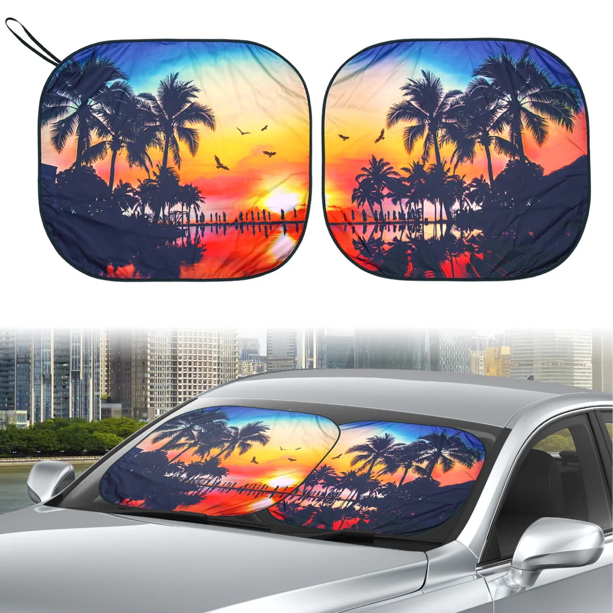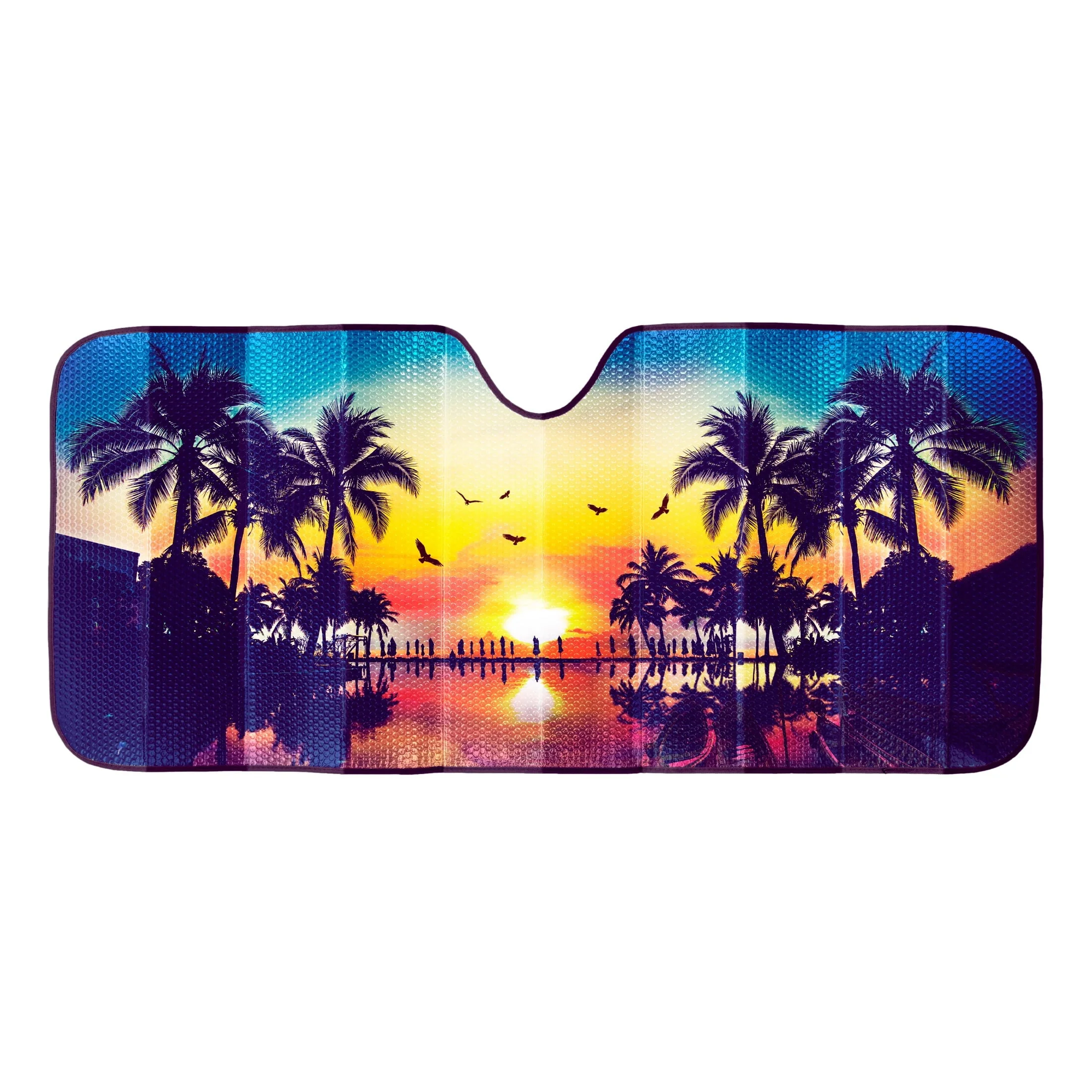 Auto Drive 2 Count Palm Tree Sunset Universal Twist Sun Shade Product Size 28.5'' x 31.5''