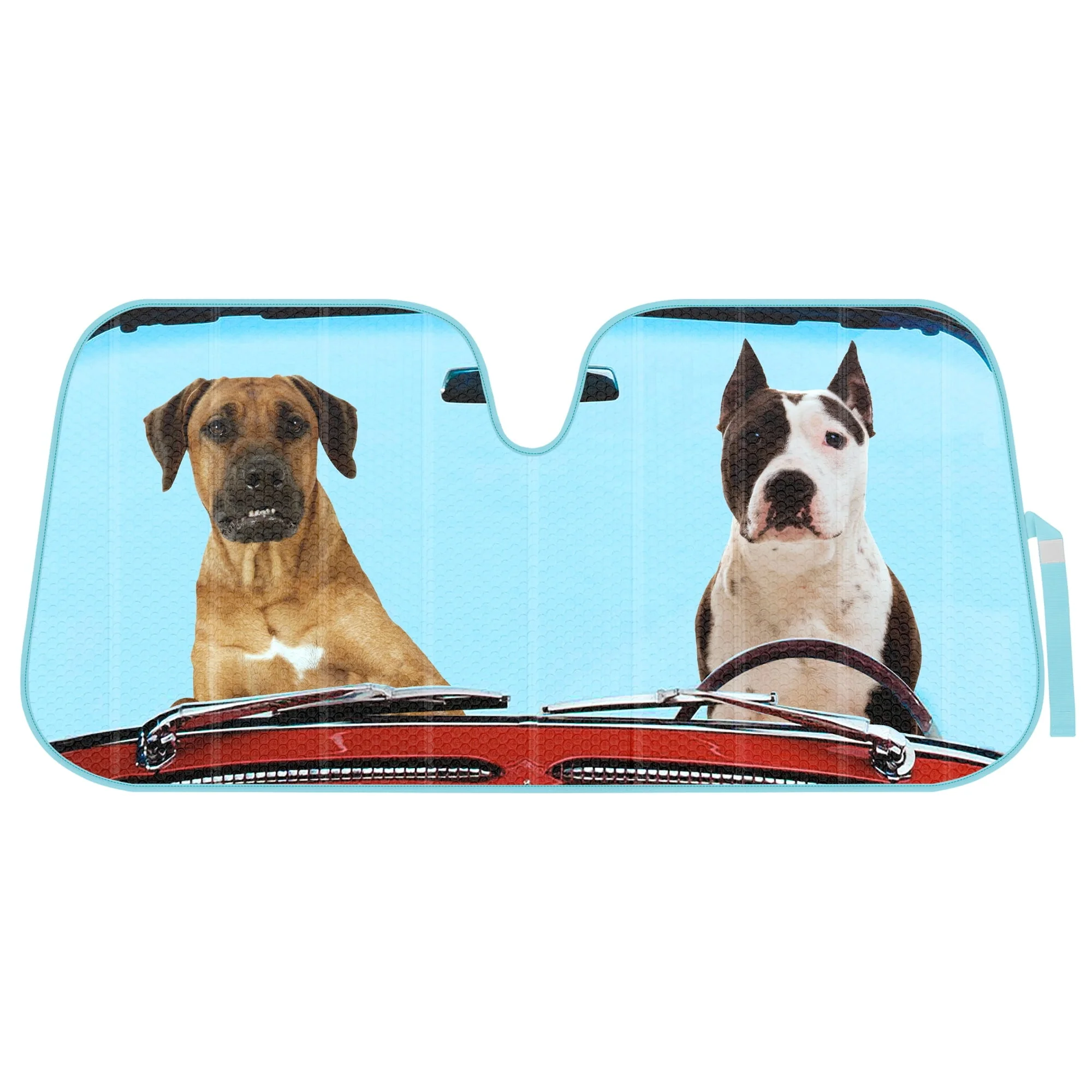 BDK Two Dogs Design Auto Auto Shade for Car SUV Truck, Pet Pals, Double Bubble Foil Jumbo Accordion